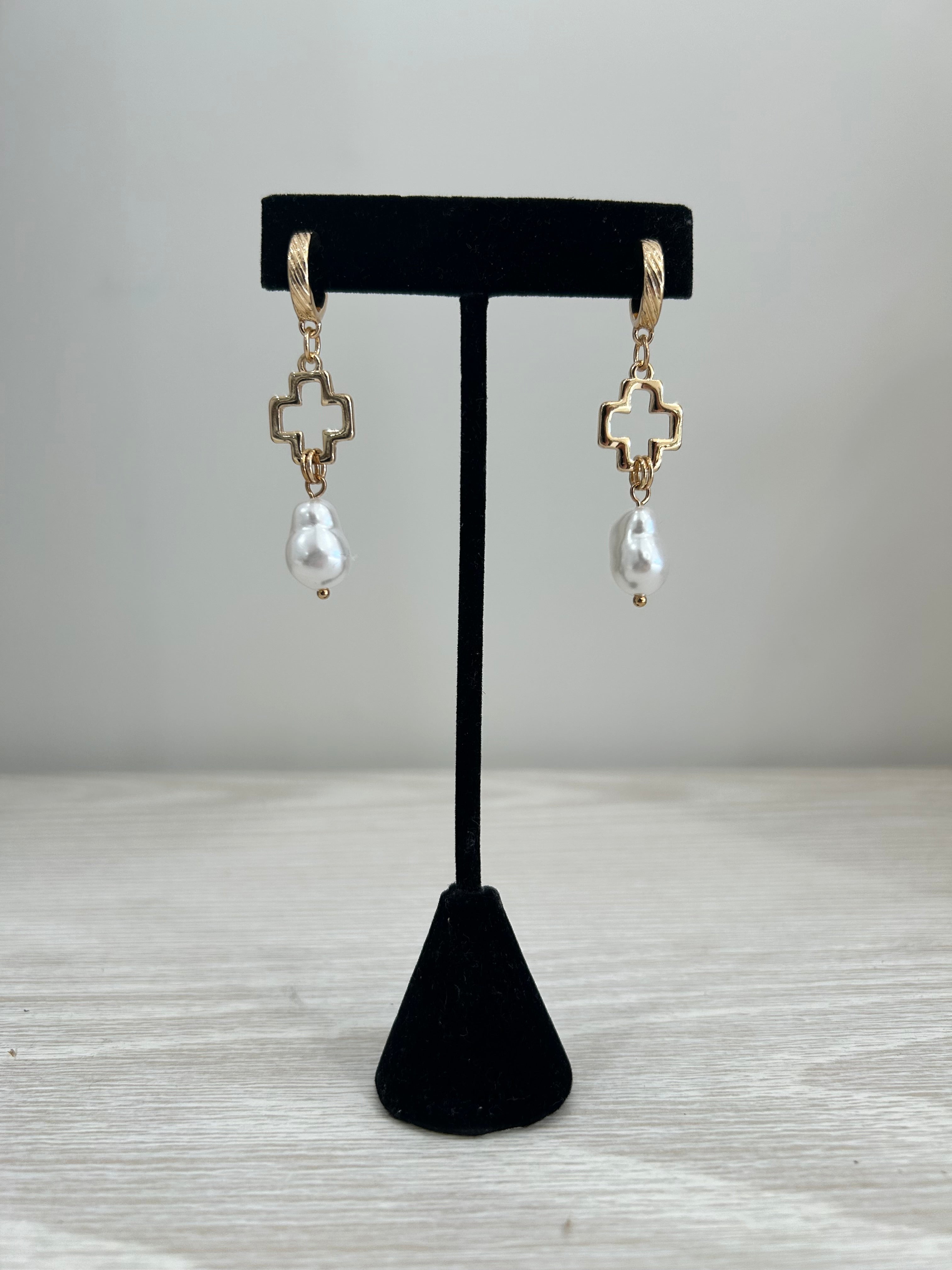 Cross + Pearl Linear Drop Earrings