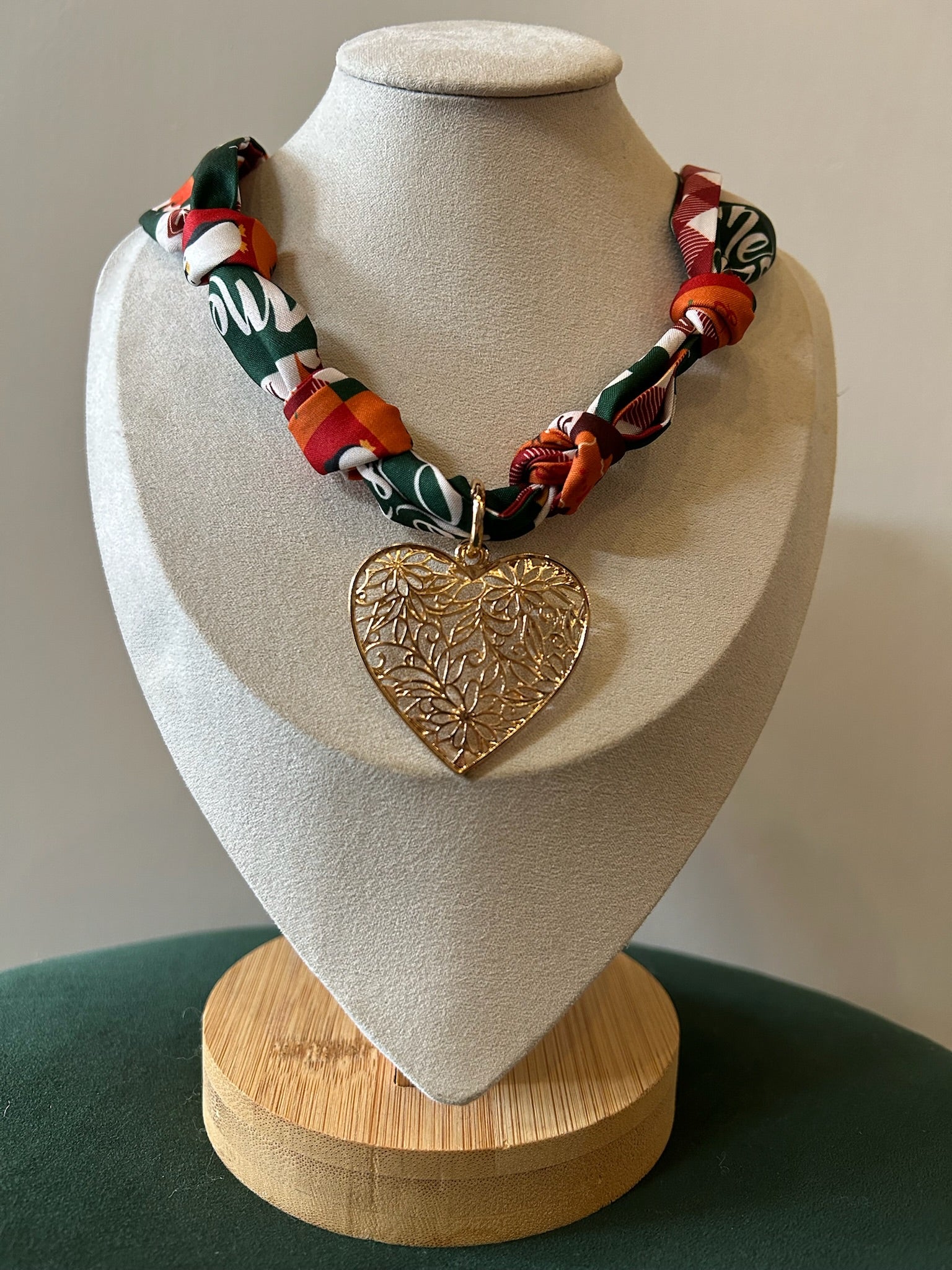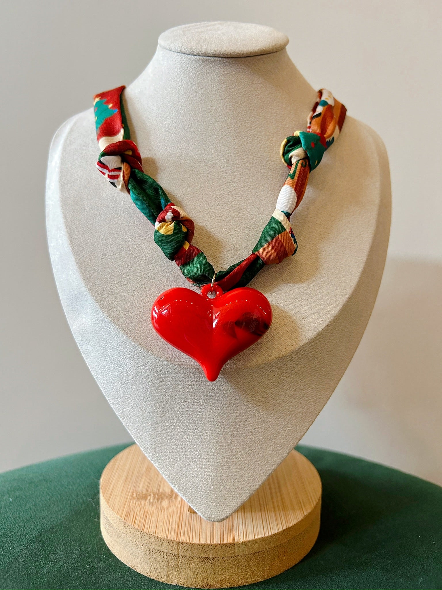 Christmas Scarf Necklace - Red Heart