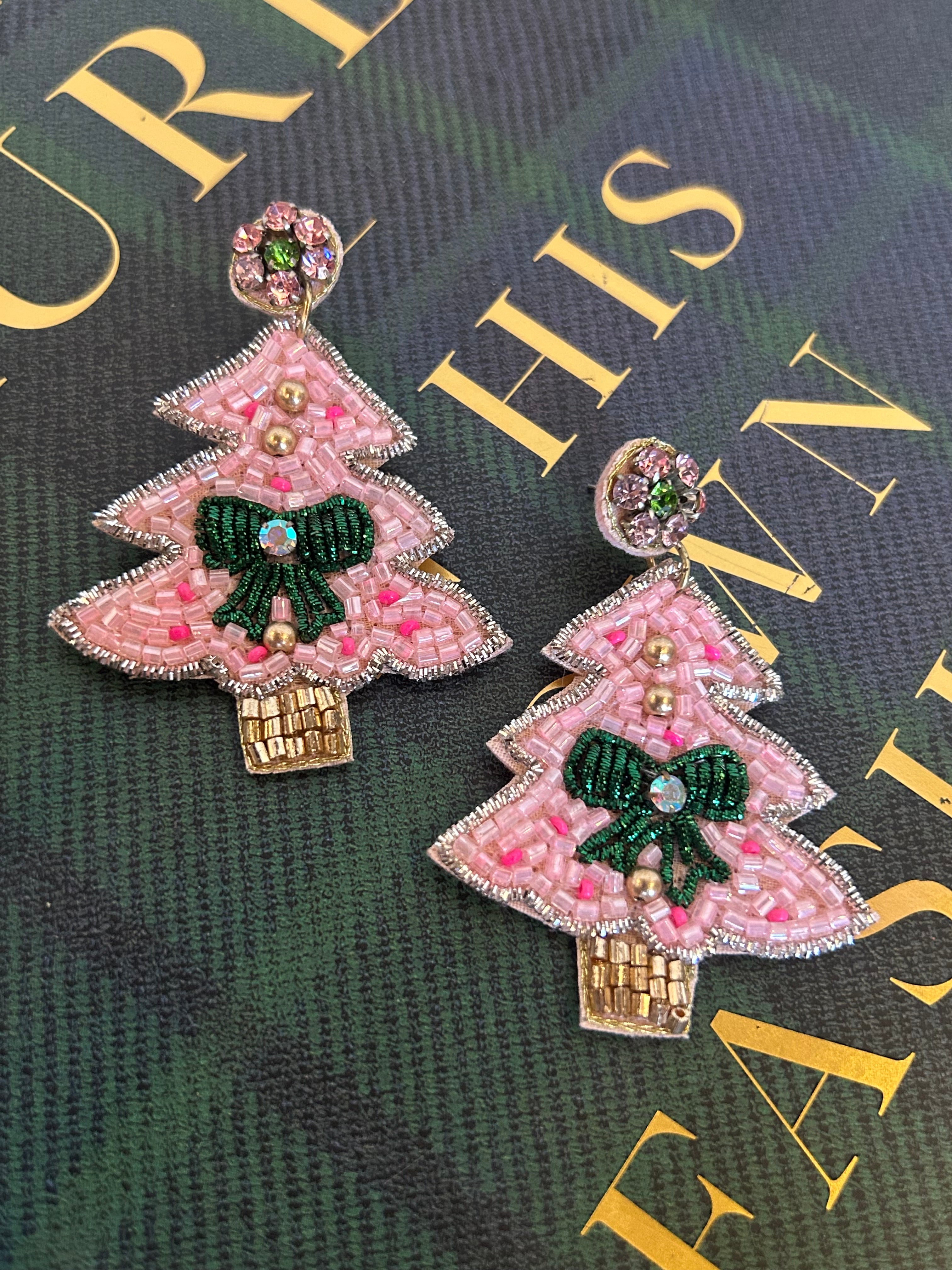 Christmas Tree Seed Bead Earrings