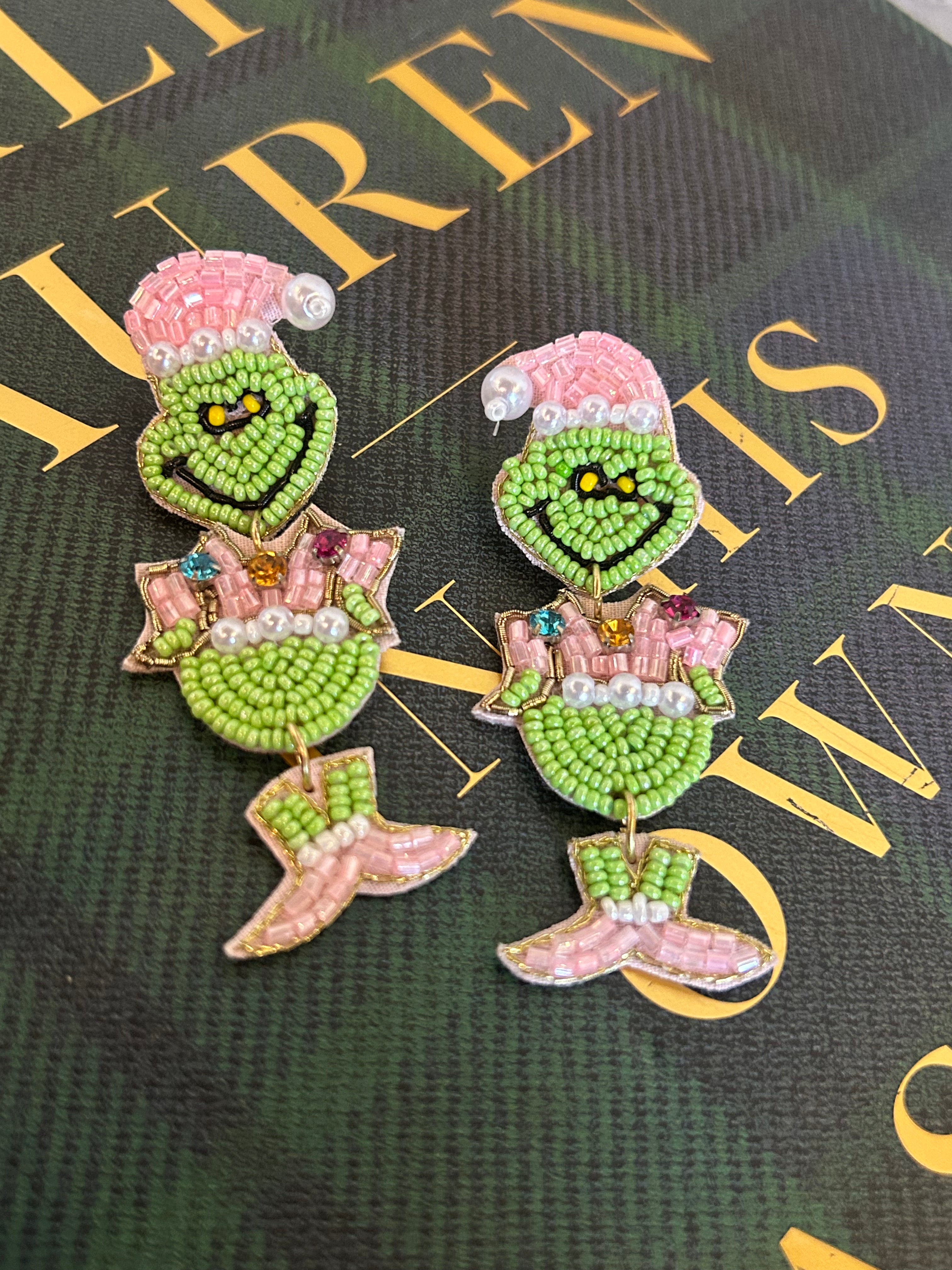 Grinch Seed Bead Earrings - Pink