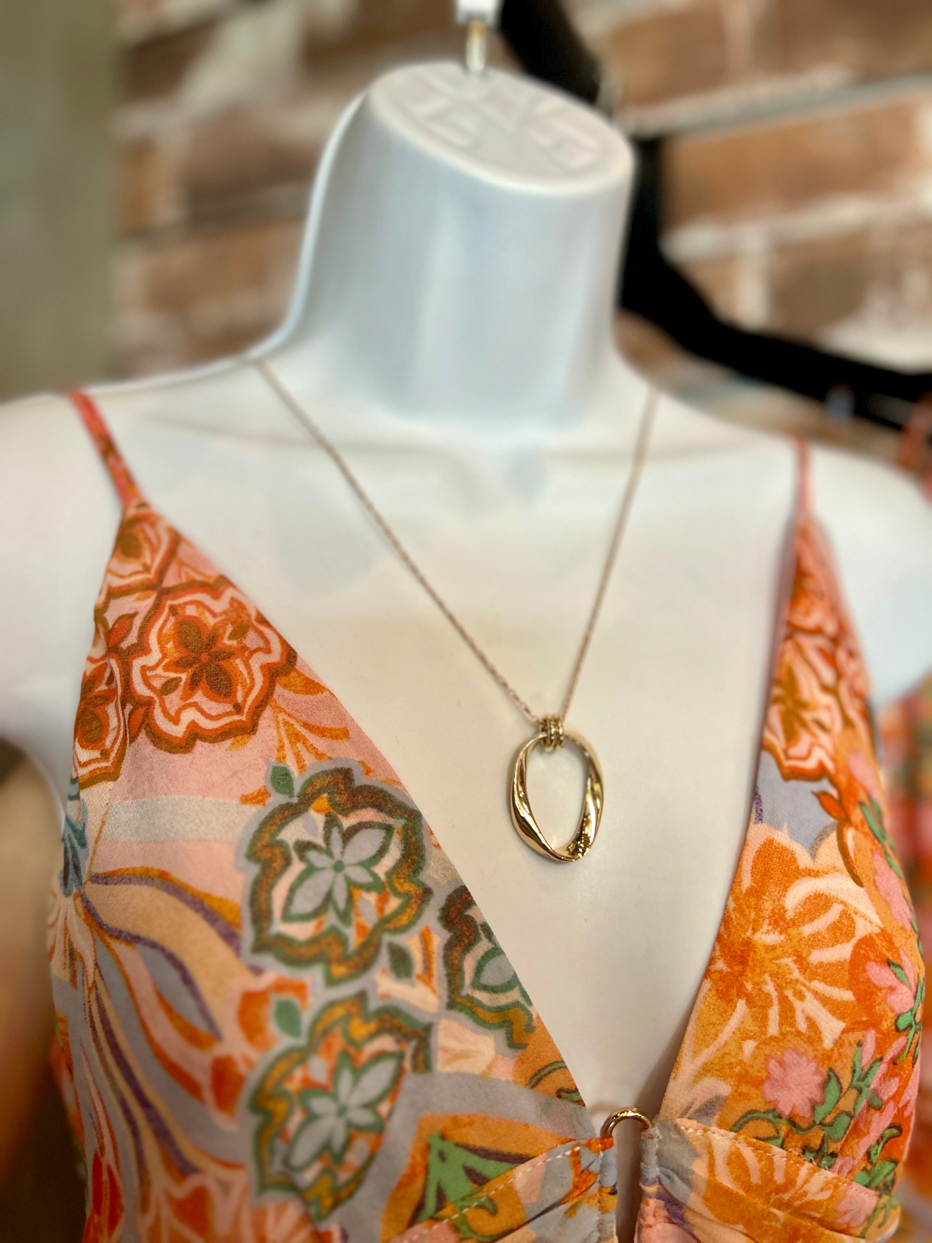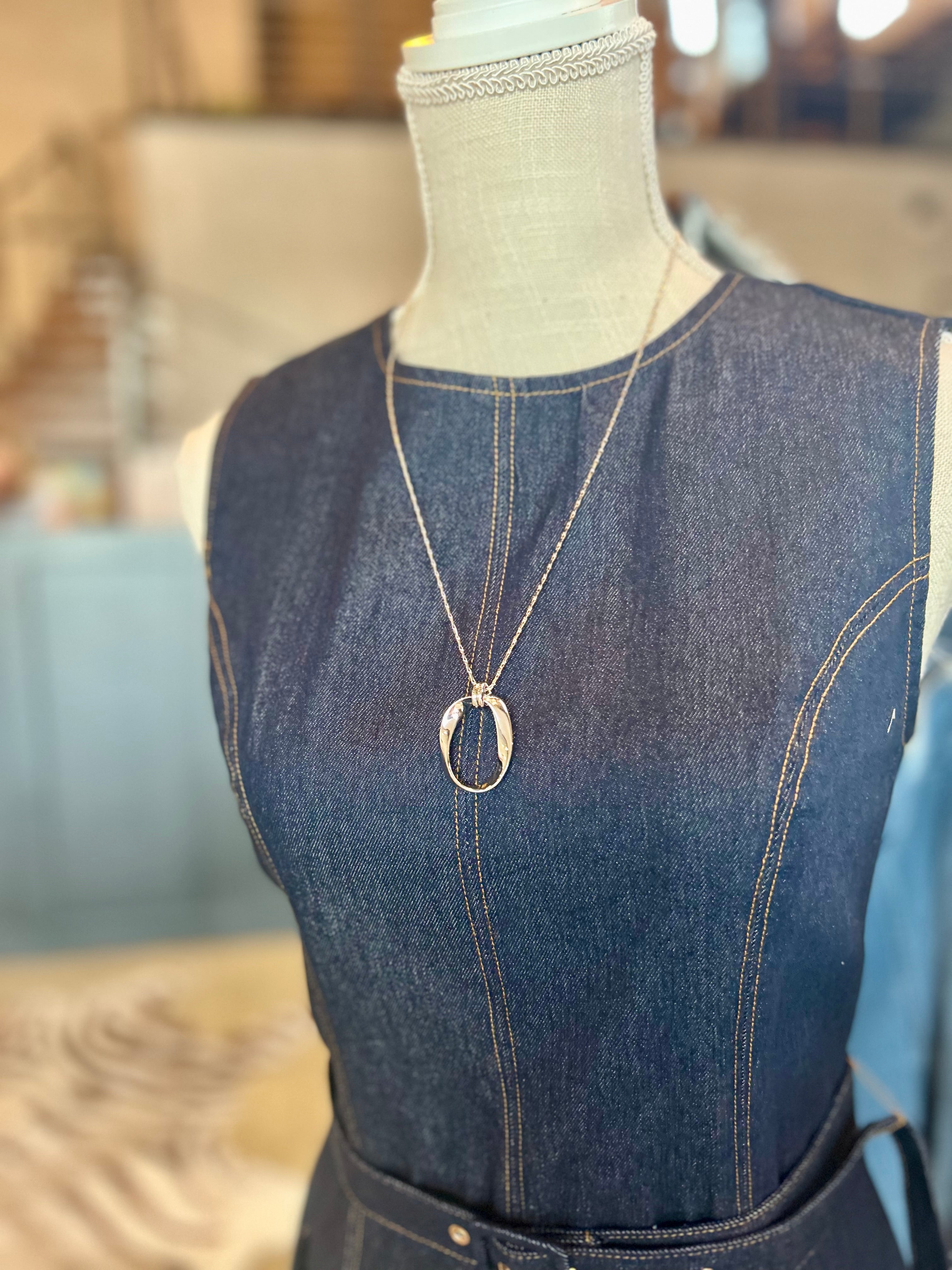 Twisted Oval Pendant Necklace -G