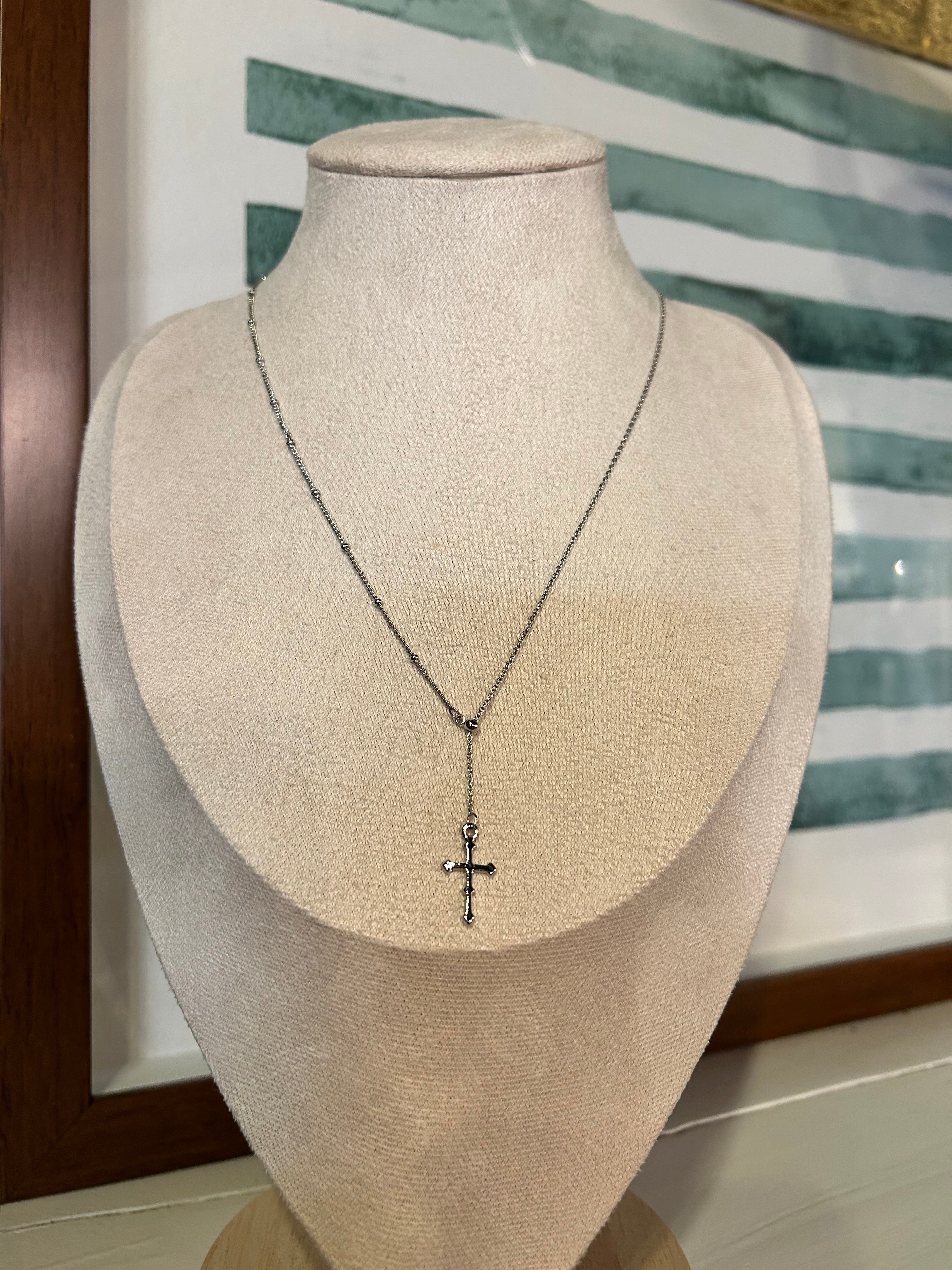 Cross Y Chain Necklace - Silver