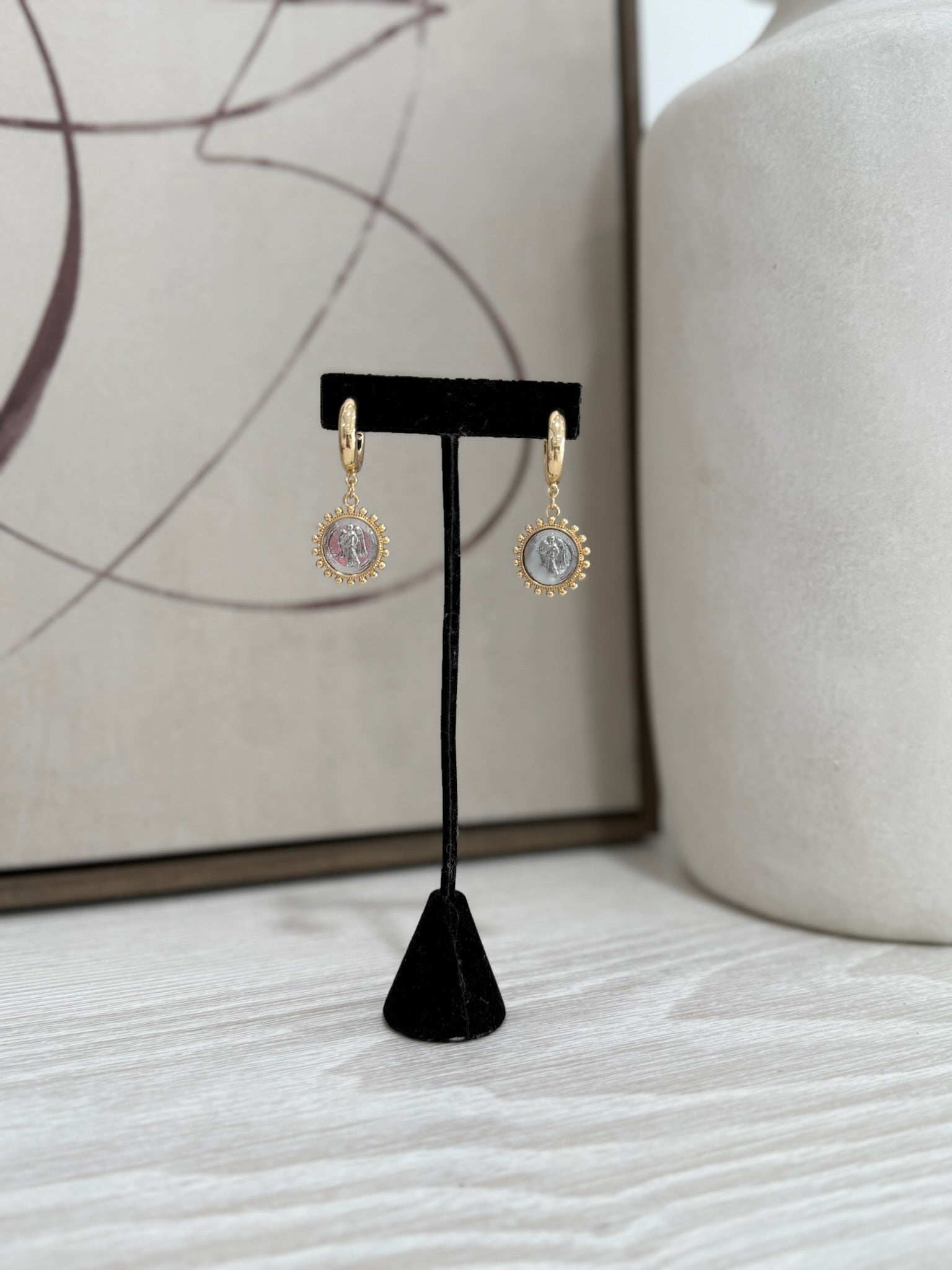 Saint Coin Charm Hoops