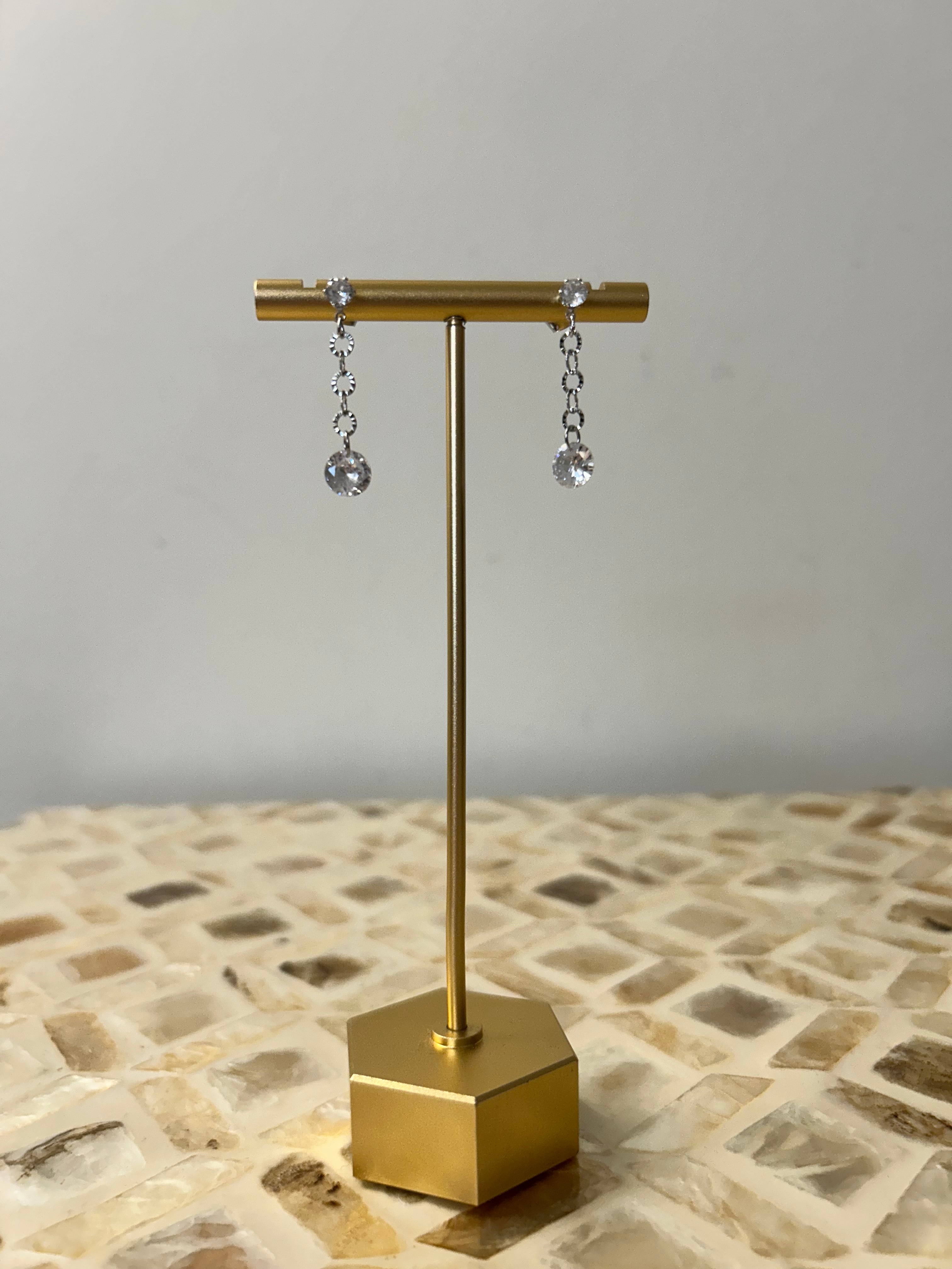 Gem Chain Earrings - Silver