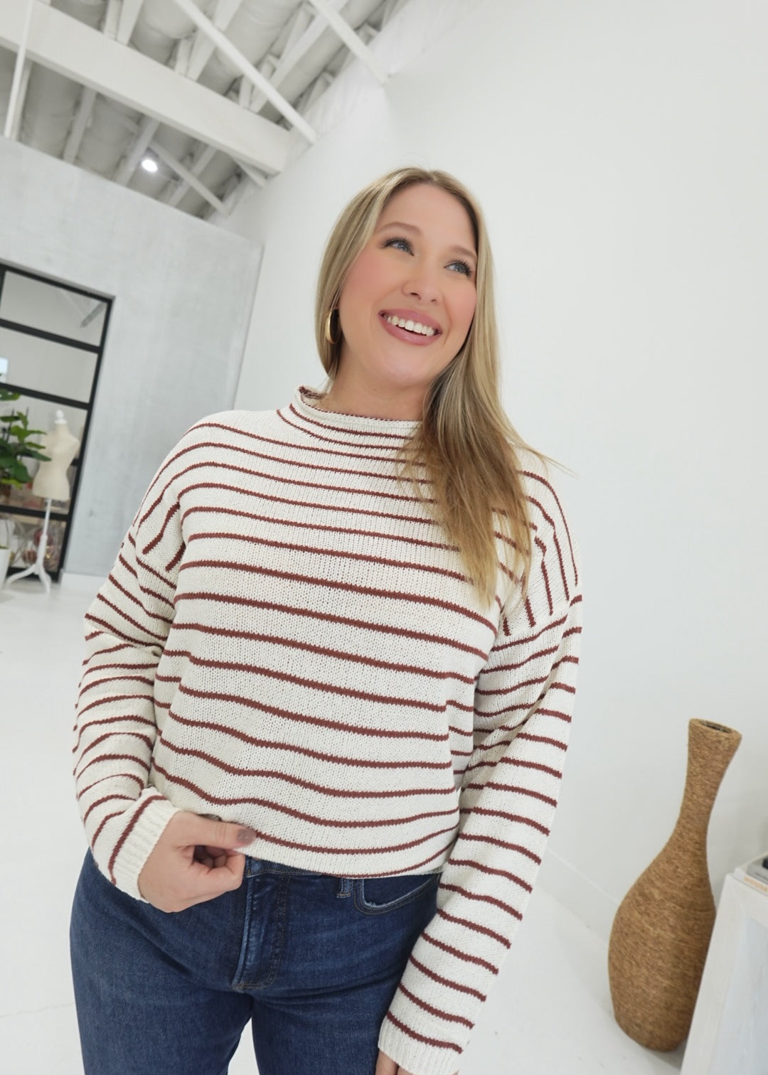 Striped Mock Neck Sweater