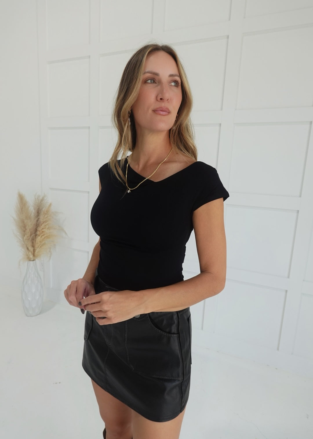 Chasity Split Neck Top - Charcoal