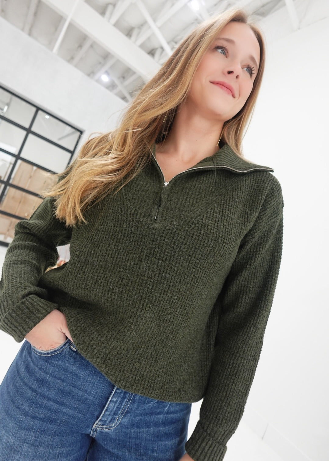 Truce Half Zip Sweater - Dk Olive