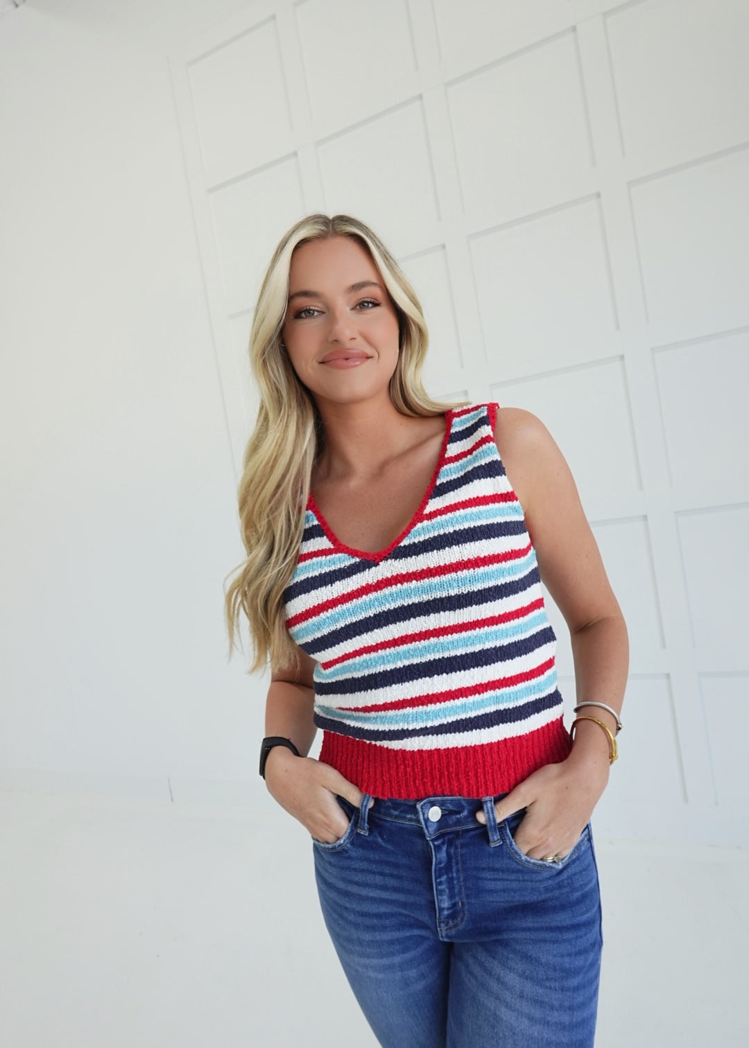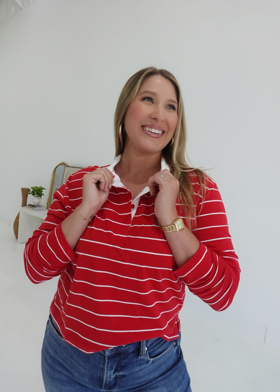 Bastian Collared Top - Red/White