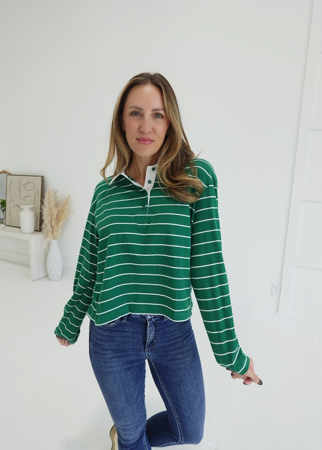 Bastian Collared Top - Green/White
