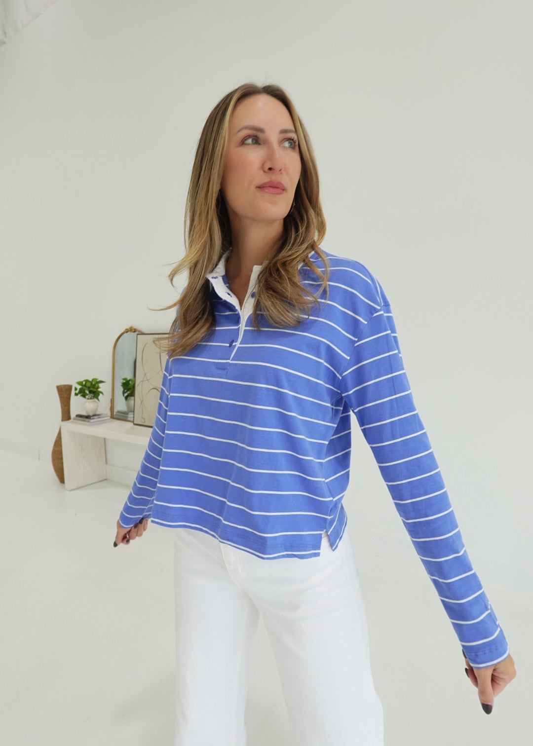 Bastian Collared Top - Blue/White