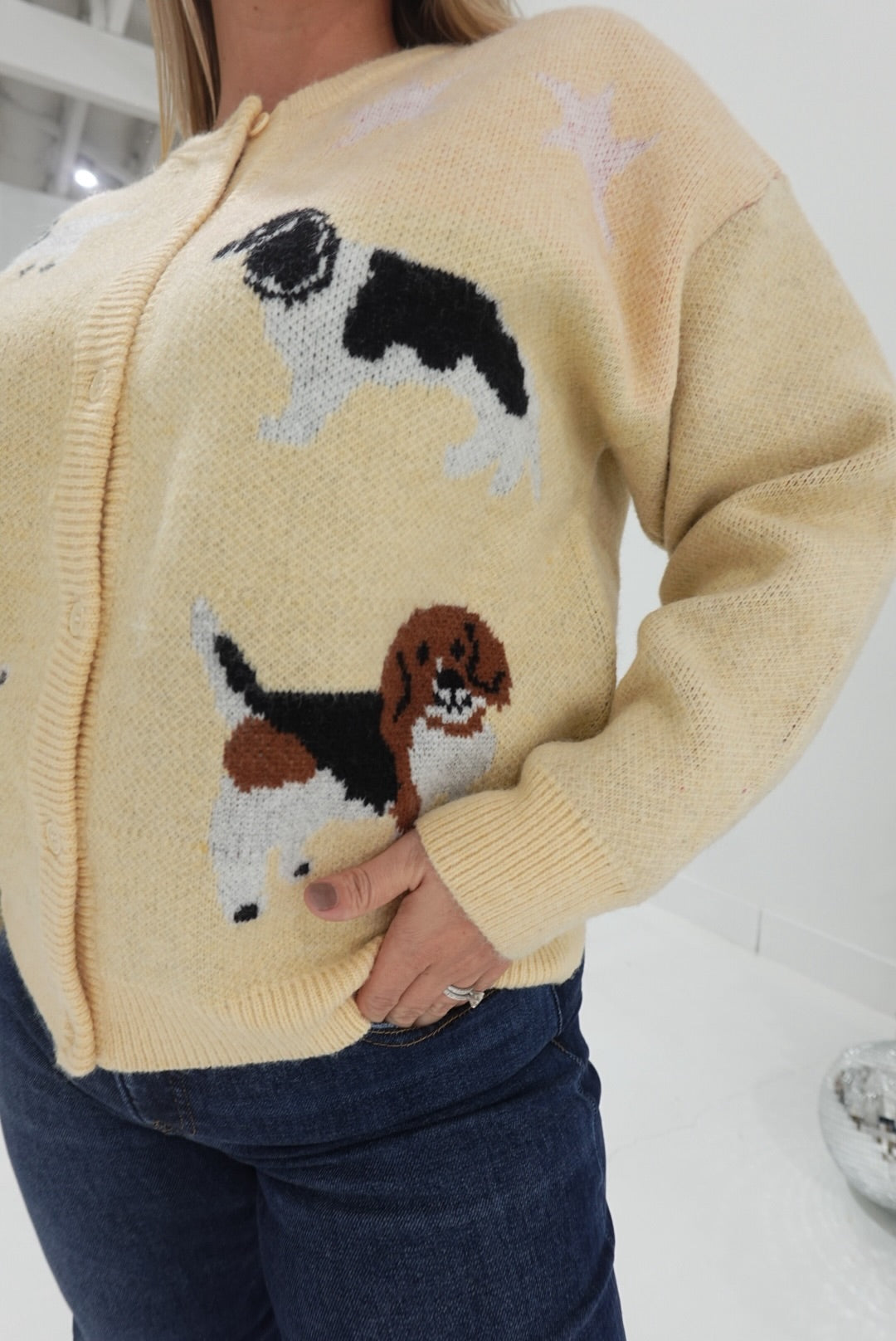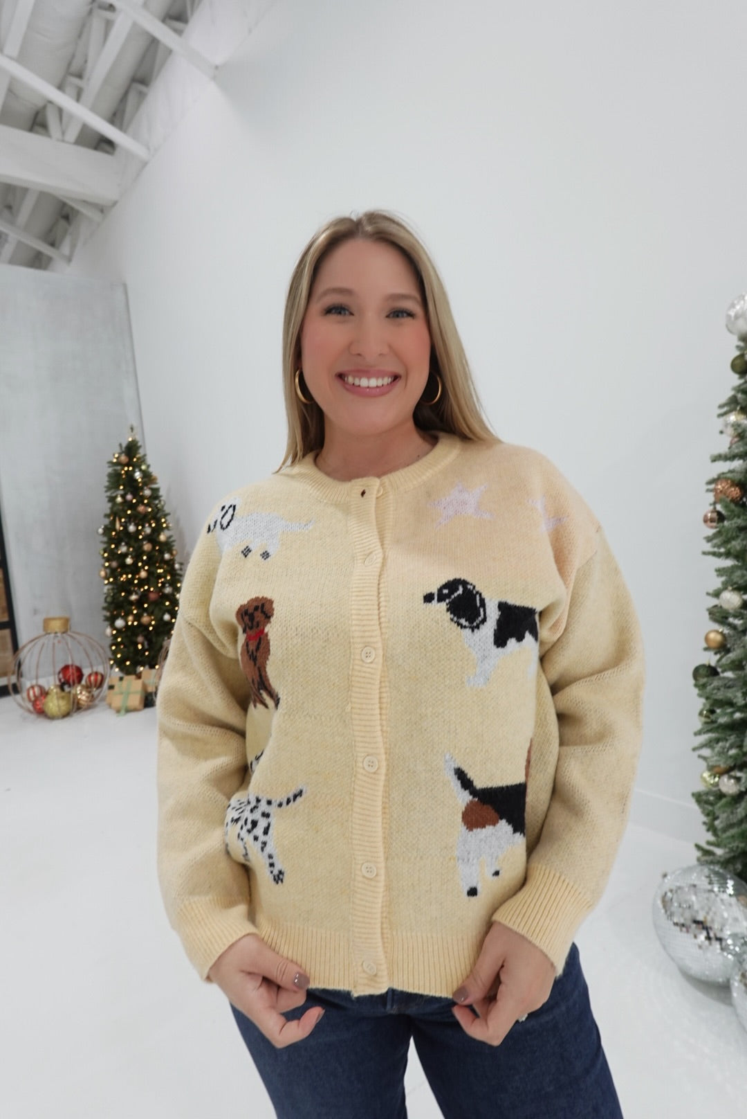 A Girl's Best Friend Cardi Sweater combines cozy warmth with a playful dog print, adding charm to your everyday wardrobe. This button-down cardigan offers easy layering and a comfortable fit, making it a perfect choice for casual outings or relaxing at home. Embrace comfort with a touch of personality in this versatile piece designed to support your style and keep you cozy.