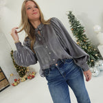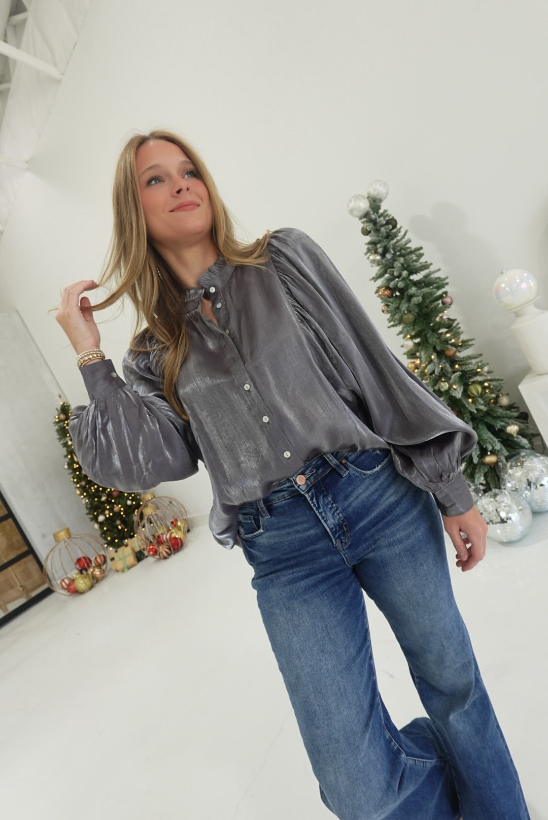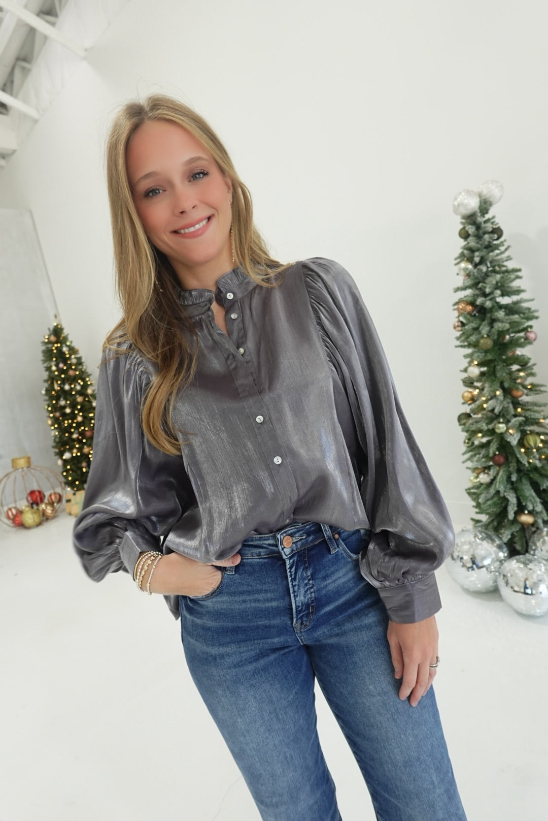 This A Little Shimmer Blouse features a delicate ruffle neck and button-down front, adding a touch of elegance to your look. The batwing sleeves provide comfortable movement, making it perfect for both workdays and casual outings. Its subtle shimmer enhances your outfit with a refined glow while maintaining effortless style. A versatile piece that supports your confidence and keeps you comfortable throughout your day.