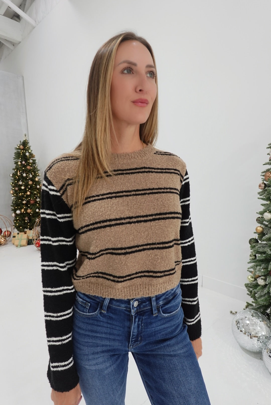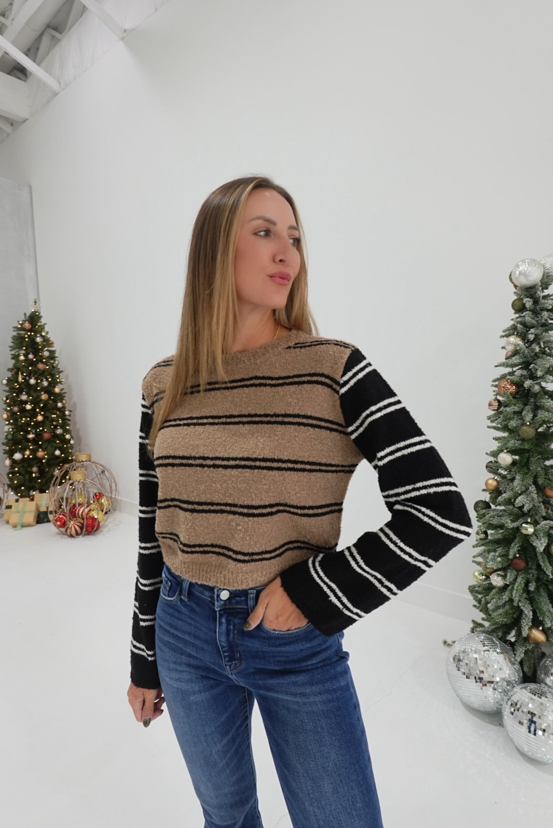 Stay cozy with the A Simple Look Sweater in Taupe Combo, featuring stylish colorblock stripes for a modern touch. Its soft knit fabric provides warmth and comfort, making it perfect for layering on cooler days. This versatile sweater effortlessly complements your casual wardrobe while adding a pop of subtle color. Designed to keep you comfortable and confident all day long.