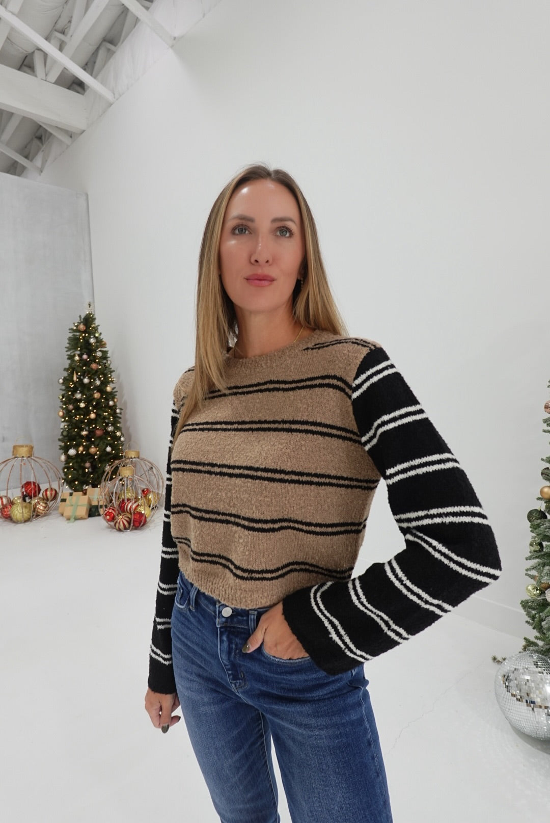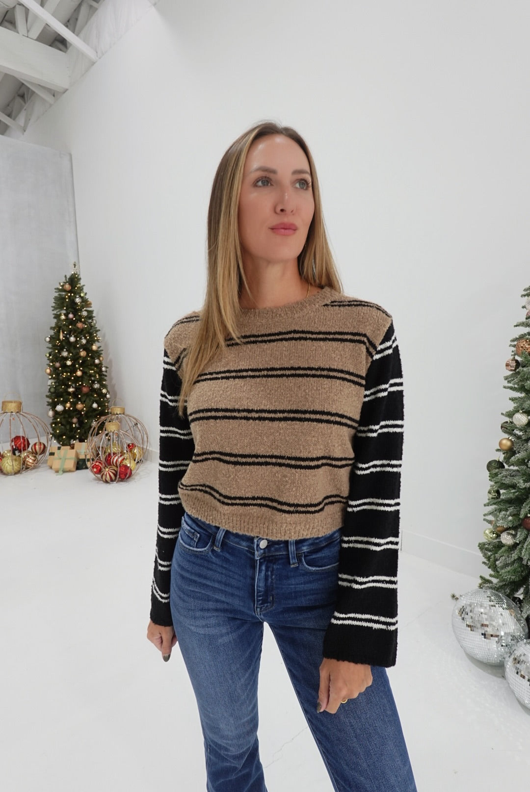 - Color Block Stripe Knit Sweater