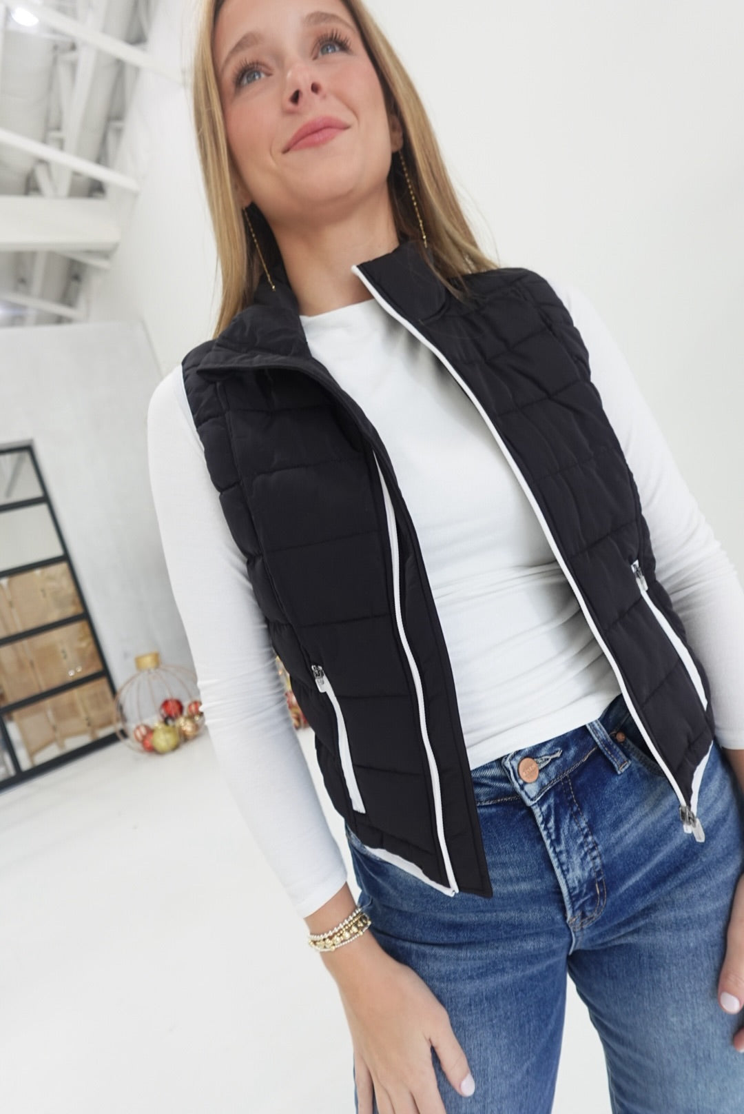 The Abroad Packable Vest in Black offers versatile layering with a sleek contrast trim design that adds subtle style. Lightweight and easily packable, it’s perfect for adapting to changing temperatures while traveling or daily wear. Stay comfortable and ready for any adventure with a vest that combines simplicity and functionality.