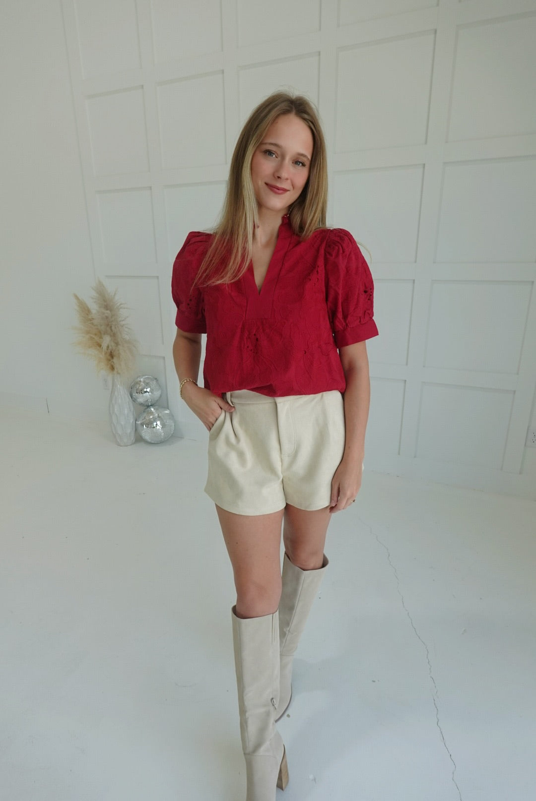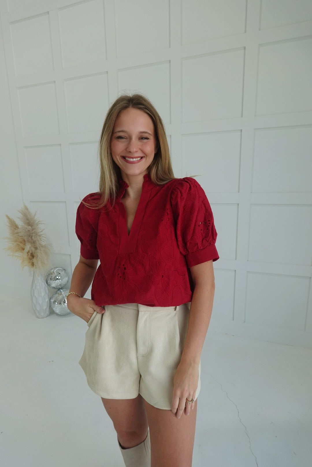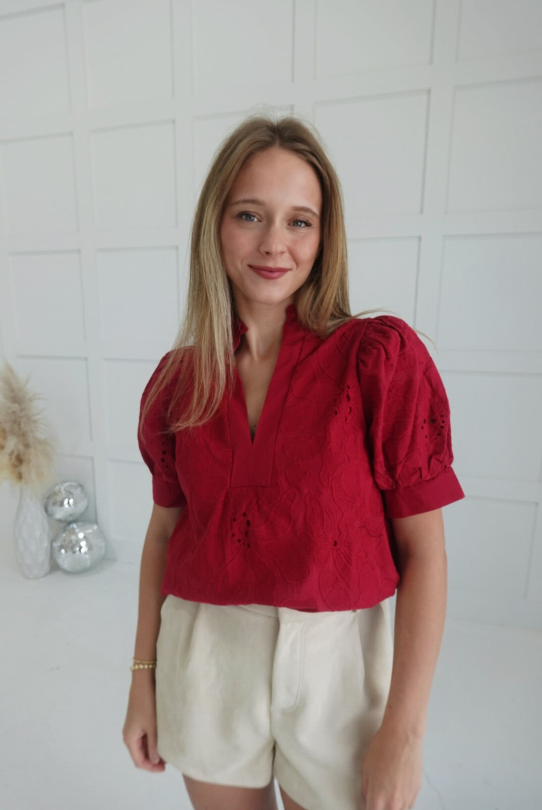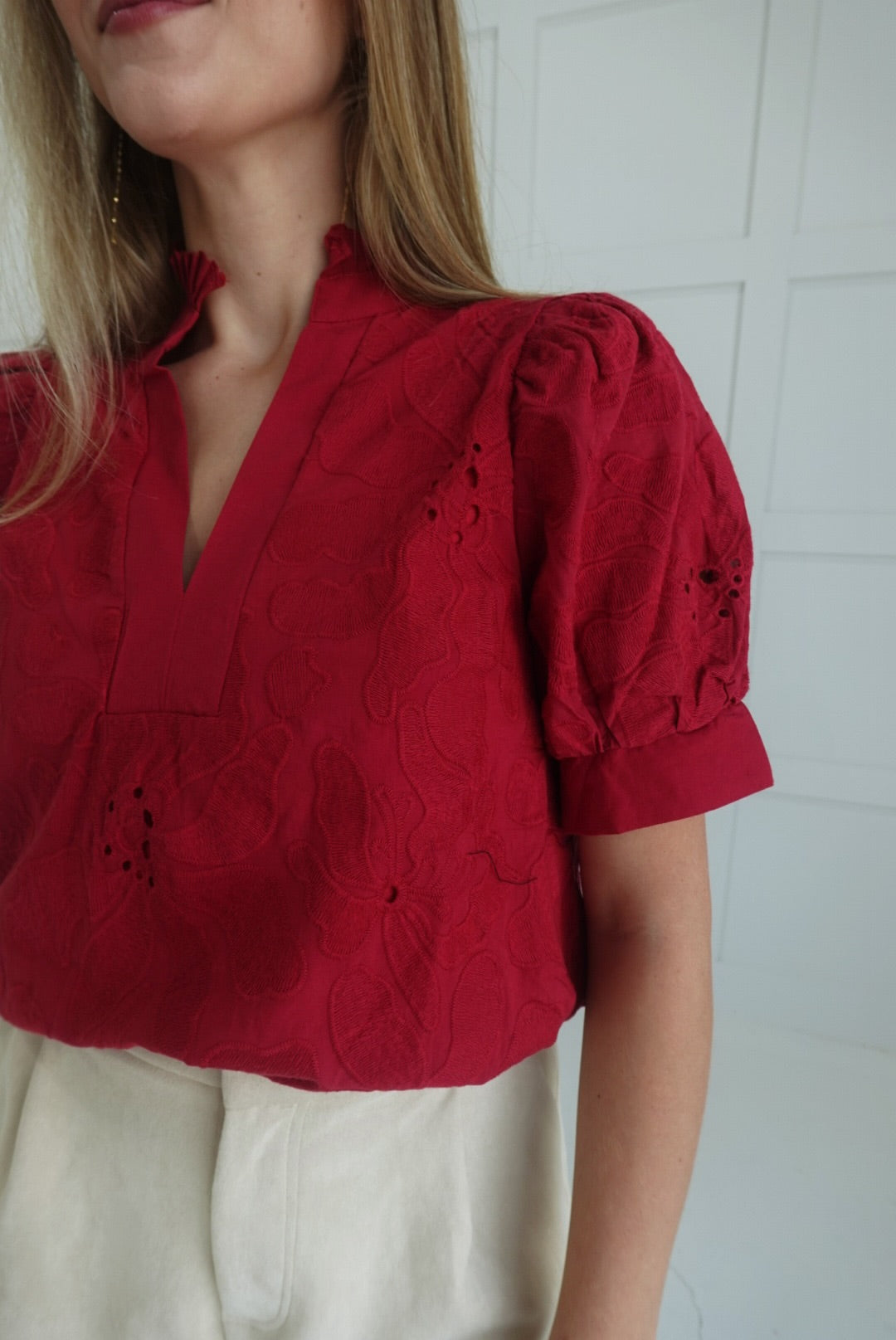 Adaline Embroidered Blouse - Red