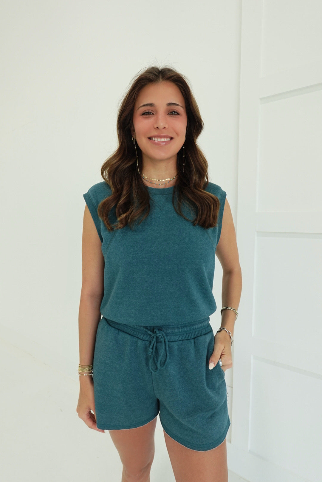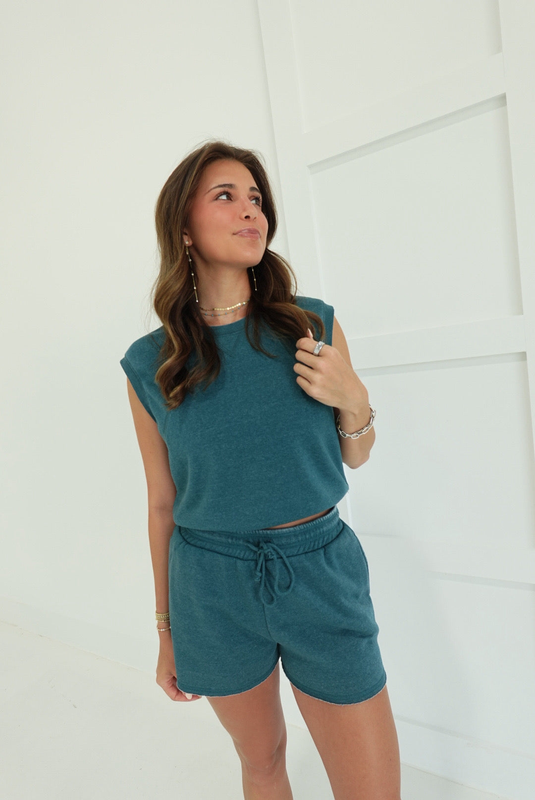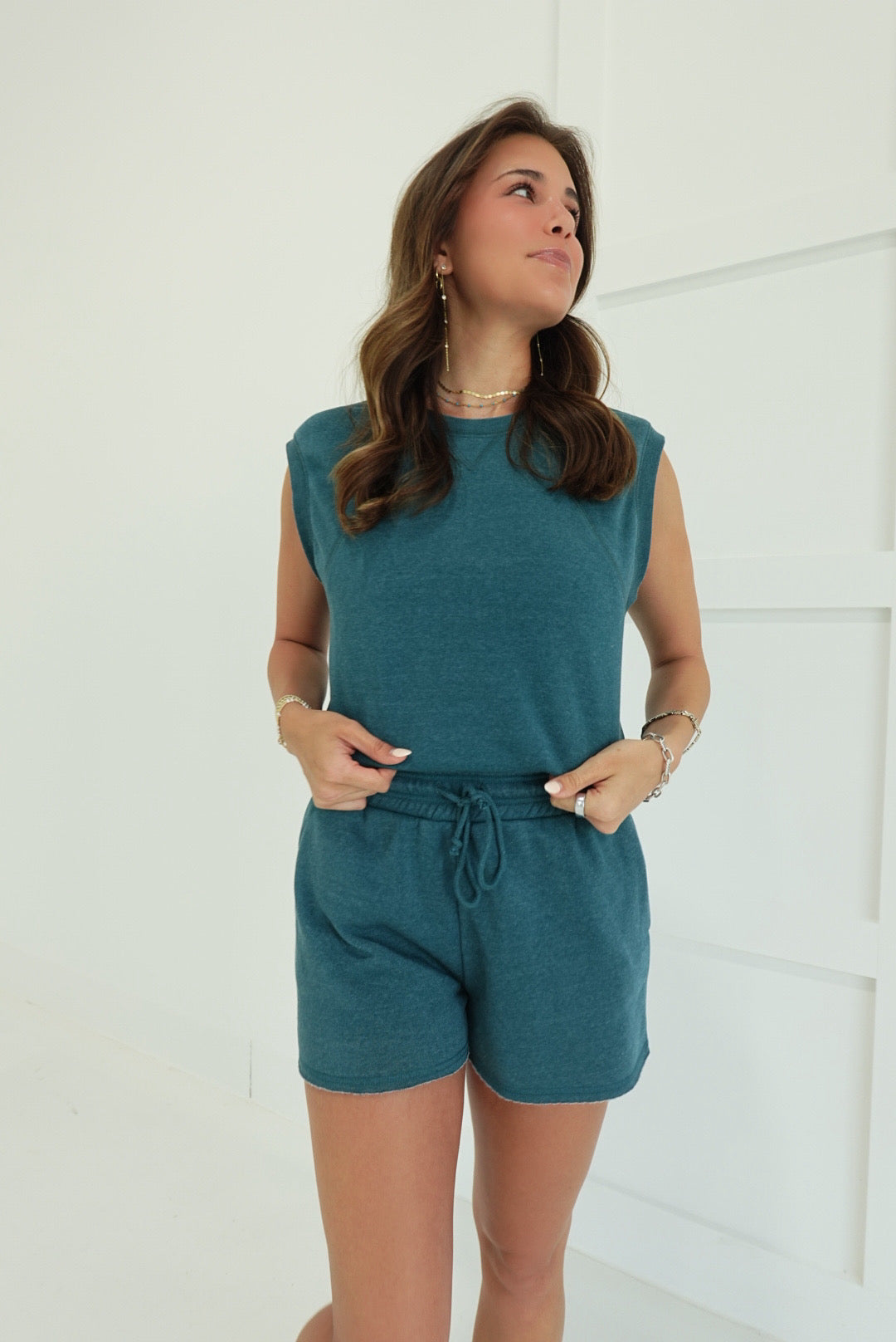 Effortless comfort meets laid-back style with this burnout French terry sleeveless set. The lightweight, textured fabric drapes beautifully while keeping you cool, making it perfect for relaxed days at home or casual outings. The coordinated top and shorts pair seamlessly for a put-together look that requires zero effort. Soft, breathable, and undeniably chic—your new go-to for comfort without compromise.