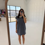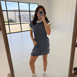 The Agenda Is Comfort Dress cuts through the ordinary with bold contrast trim and striking stripes that refuse to blend in. Designed for those who wear confidence like a second skin, this dress pairs effortless comfort with editorial edge—the kind of piece that works as hard as you do, whether you're commanding a room or commanding your own narrative. Relaxed fit, fearless style.