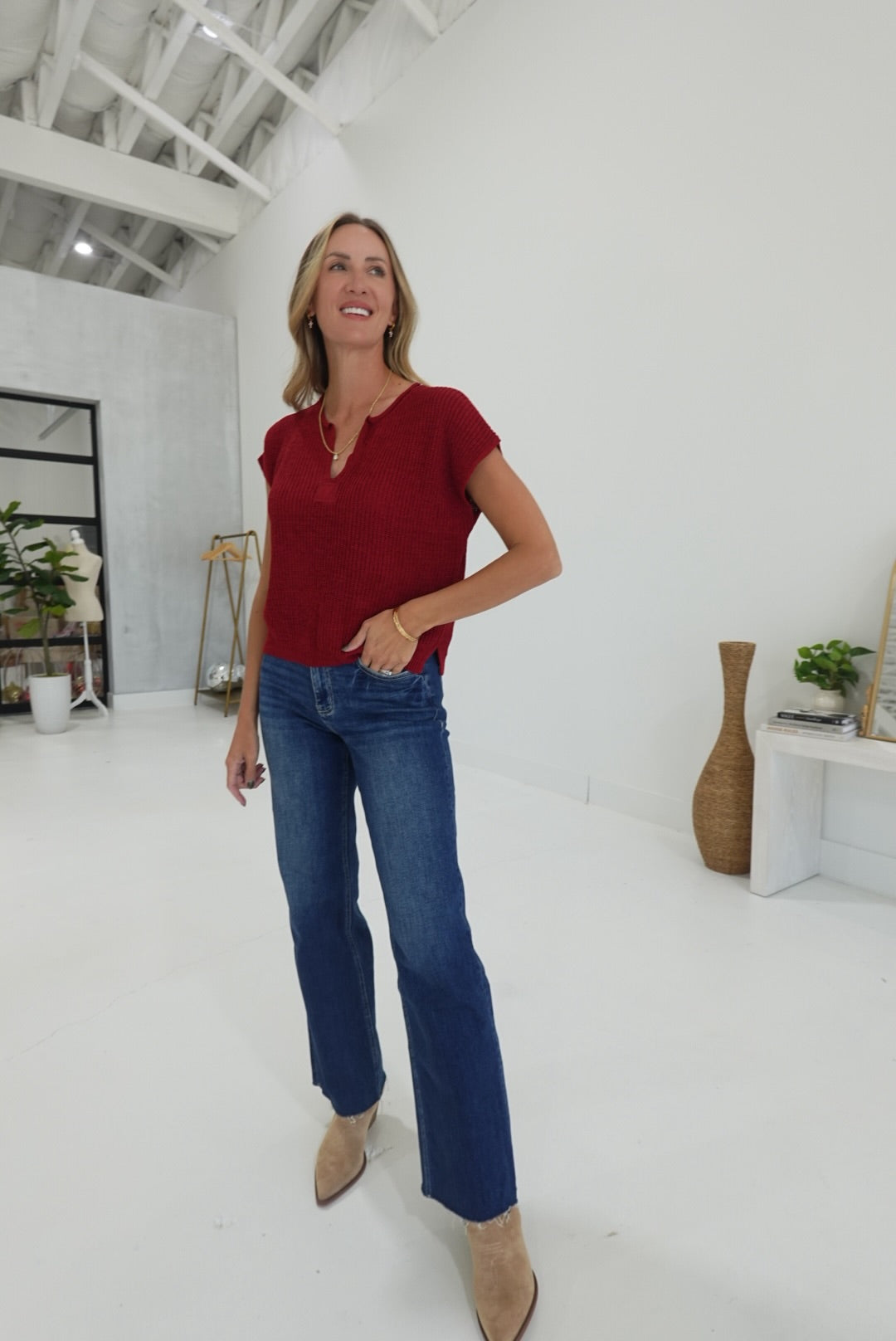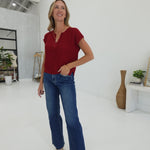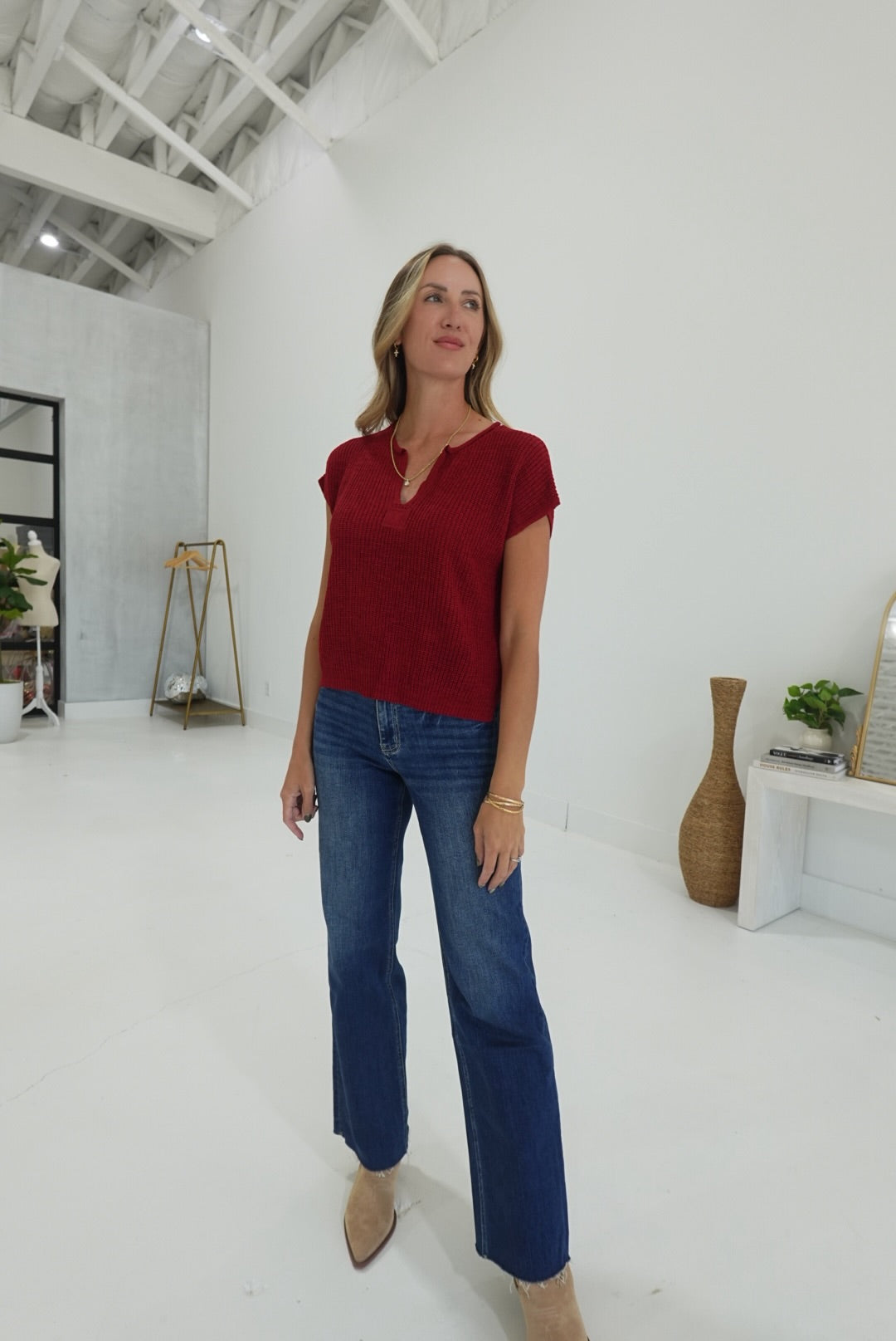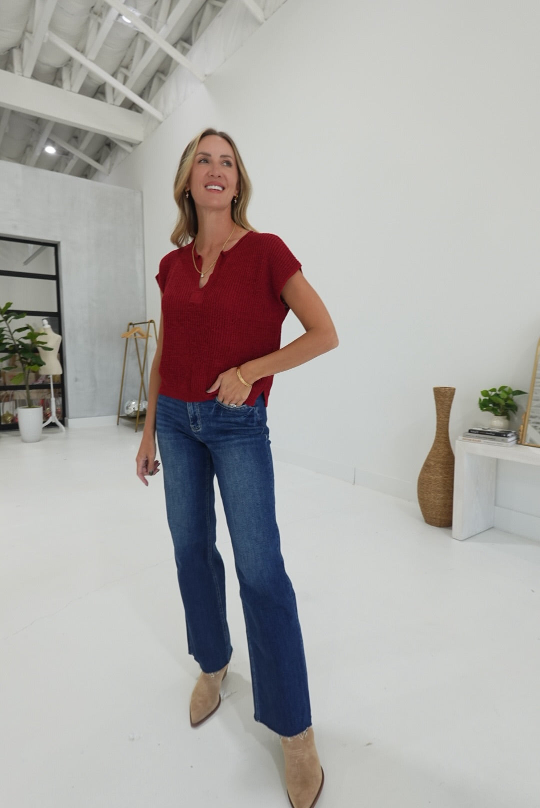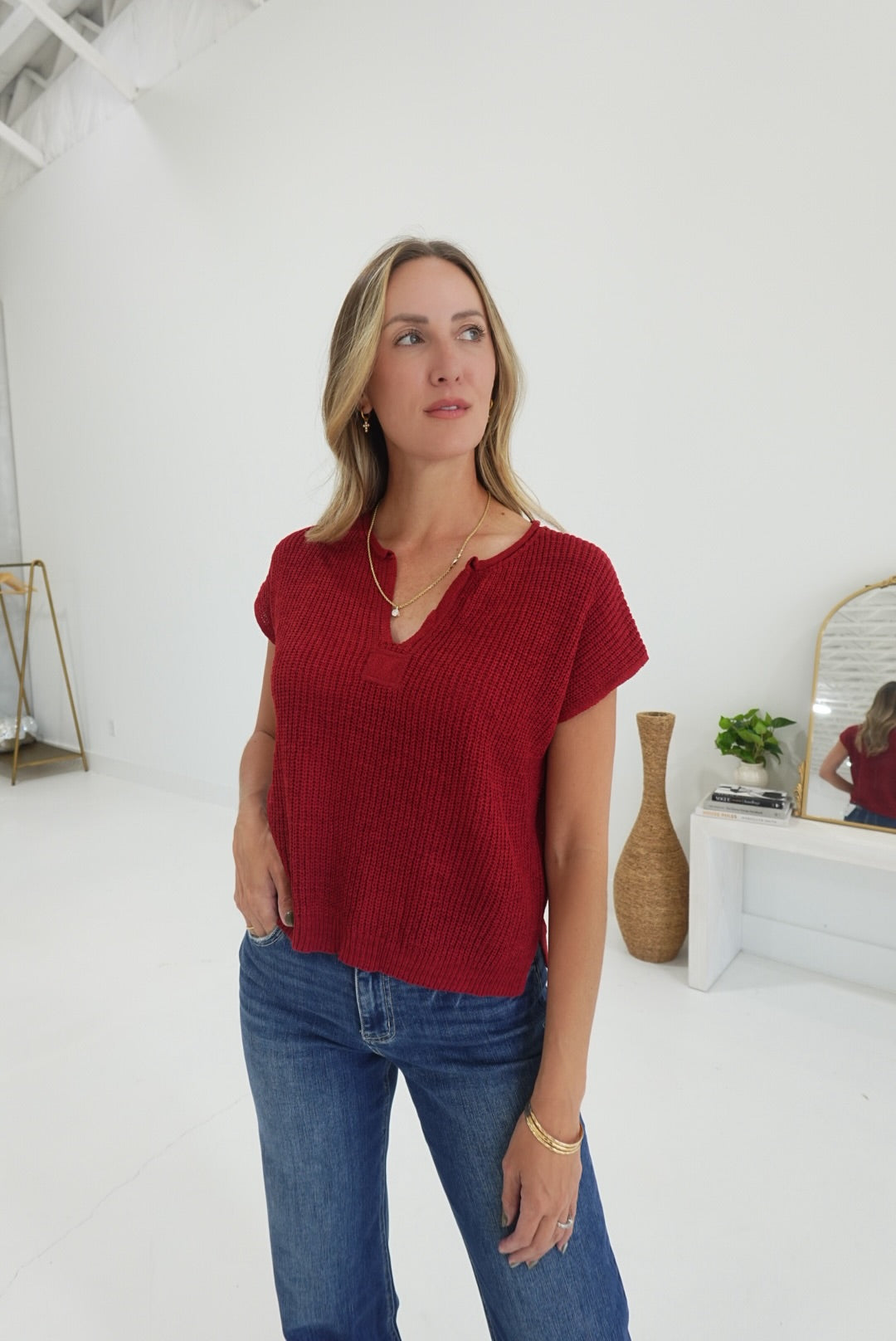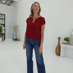 The All of The Above Top features a stylish split neck design with short sleeves, crafted from soft knit fabric for all-day comfort. Its breathable material and relaxed fit make it perfect for layering or wearing on its own, offering versatile wear that supports your busy lifestyle effortlessly.