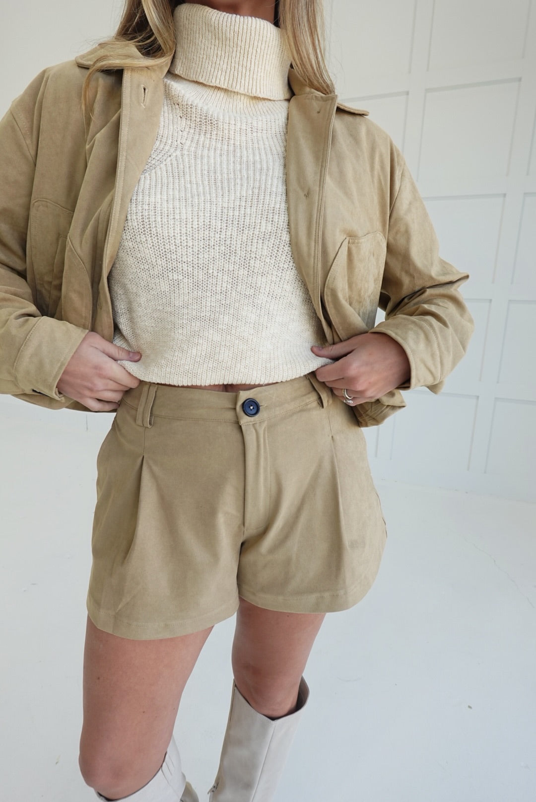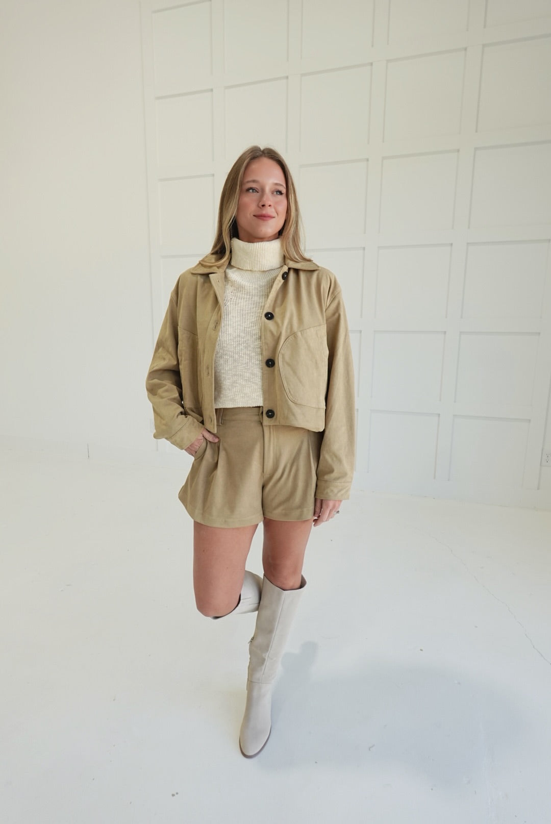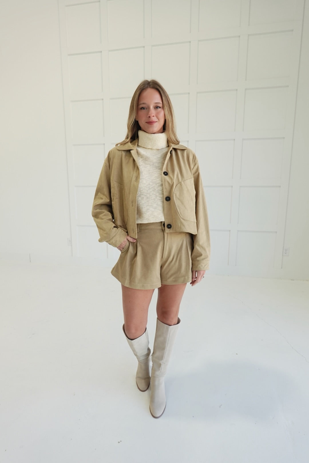 Elevate your style with the Alto Suede Set, featuring a luxurious suede jacket paired with pleated suede shorts. This coordinated ensemble offers a chic, polished look that combines comfort and sophistication. The soft suede material enhances durability and breathability, while the pleated shorts add a touch of tailored elegance. Perfect for effortless dressing, this set ensures you feel confident and supported in any setting.