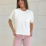 Bold femininity meets effortless edge in this daring round-neck puff sleeve top. The structured short sleeves command attention while the soft knit fabric keeps you comfortable all day. Perfect for layering over basics or standing solo as your statement piece. Pair with tailored trousers for boardroom confidence or slip on your favorite jeans for weekend attitude. This is the top that says you're not afraid to be noticed.