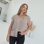 Elevate your wardrobe with the Ambiance Sweater Vest Top in Ash Mocha, featuring four elegant gold buttons that add a refined touch. This versatile vest combines cozy knit comfort with a stylish silhouette, making it perfect for layering or wearing on its own. Its neutral ash mocha shade easily complements any outfit, while the gold buttons enhance its classic appeal. Designed to keep you comfortable and confident, this sweater vest is a timeless addition that adapts effortlessly to your daily style.