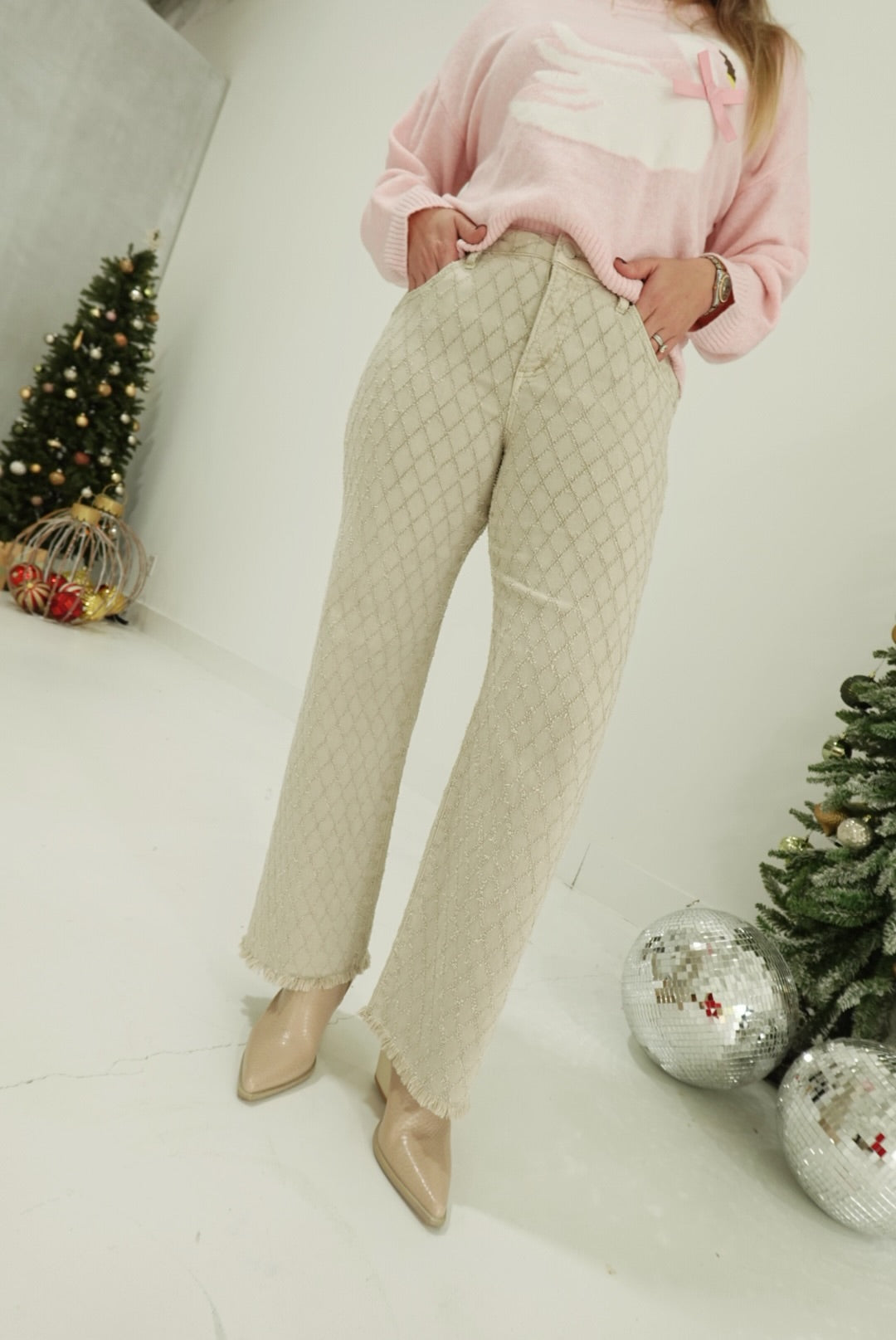 The André Textured Jeans command attention with their bold high-rise cut and fearless straight-leg silhouette. Crafted from textured denim that catches light and adds dimension, these jeans refuse to blend in. The elevated waistline flatters and elongates, while the structured fabric holds its shape through every move. Perfect for those who dress with conviction and aren't afraid to make a statement. Pair with anything from oversized blazers to fitted tops—these jeans are your foundation for confident style.