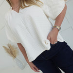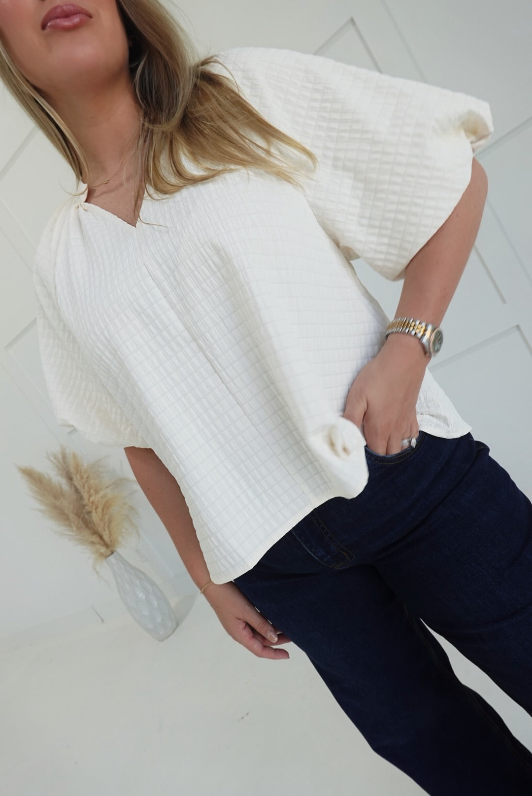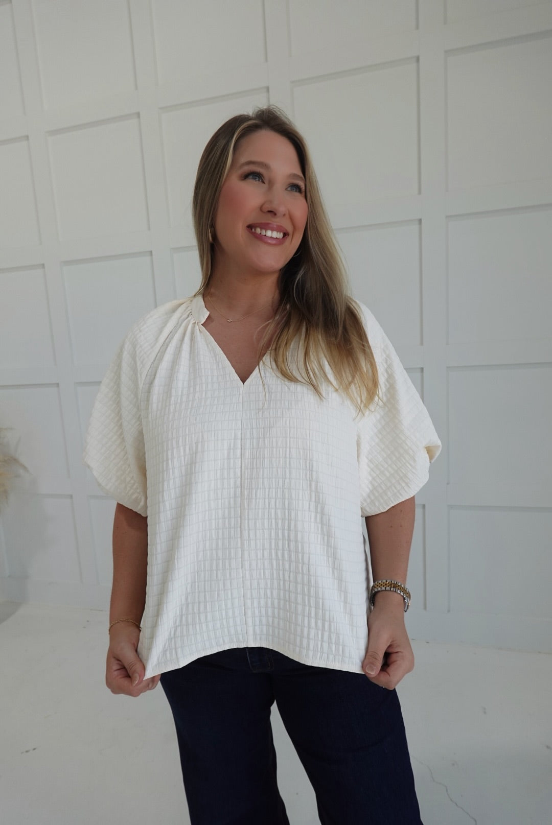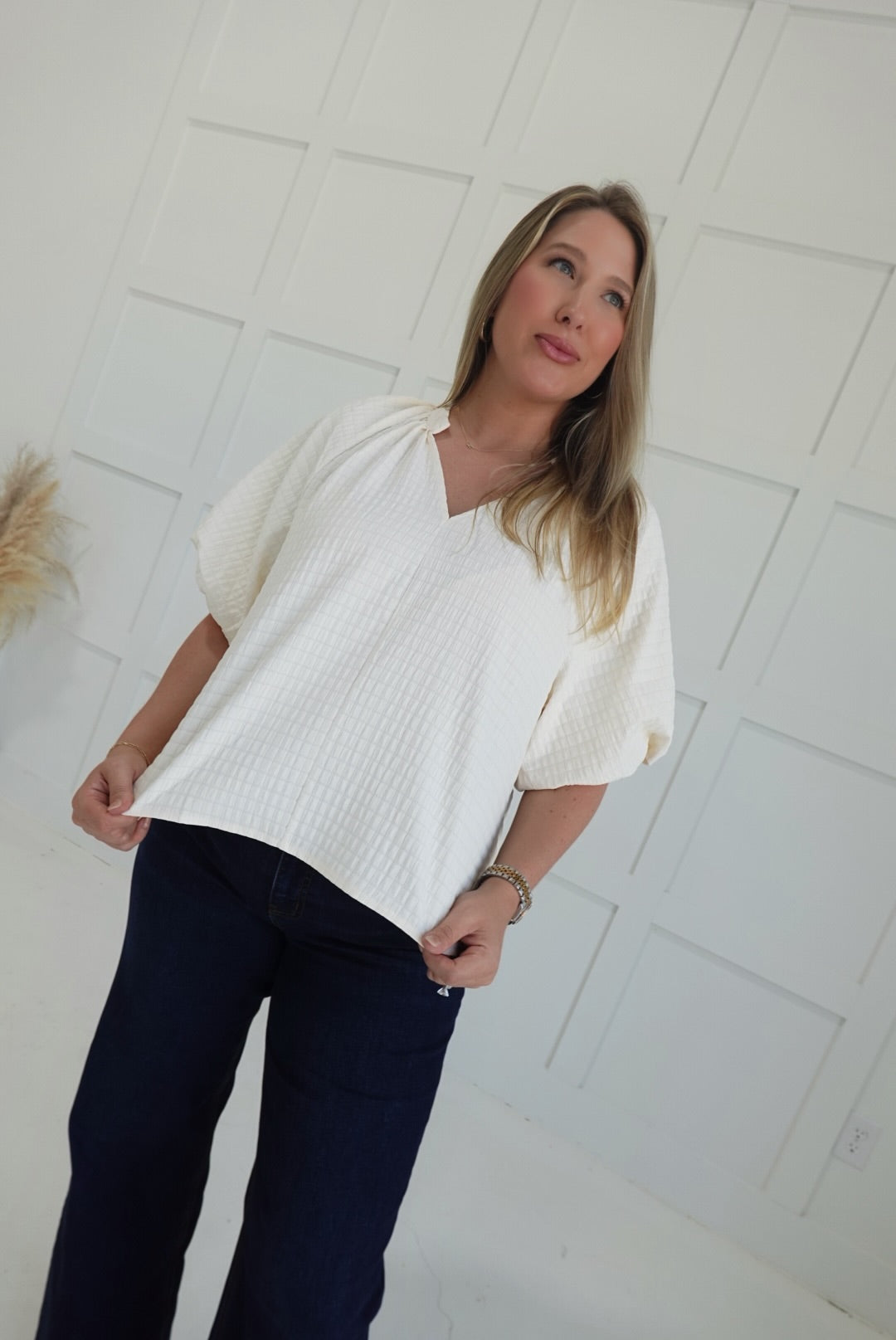 The Arbitrary Top in Ivory features elegant puff sleeves that add a touch of classic femininity to your outfit. Crafted for both comfort and style, this top offers a flattering silhouette that pairs effortlessly with your favorite bottoms, making it a versatile addition to your wardrobe. Whether you're dressing up for a special occasion or adding charm to everyday looks, the soft ivory tone and distinctive sleeves make this top a reliable choice.