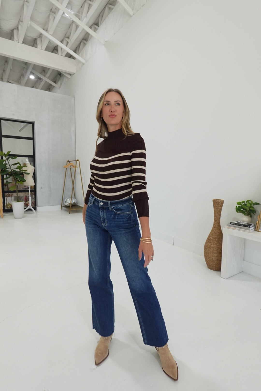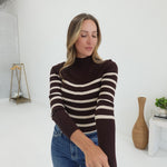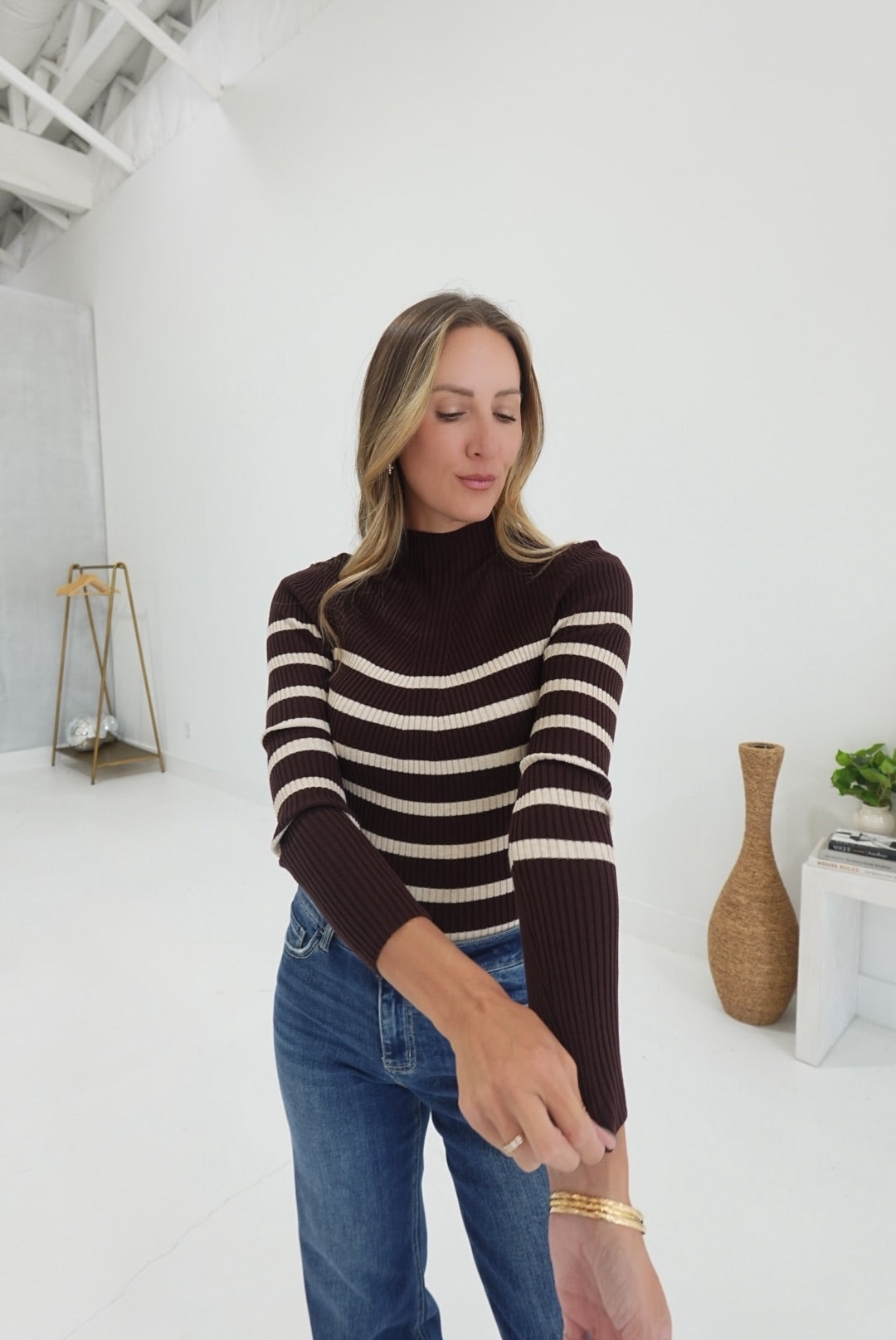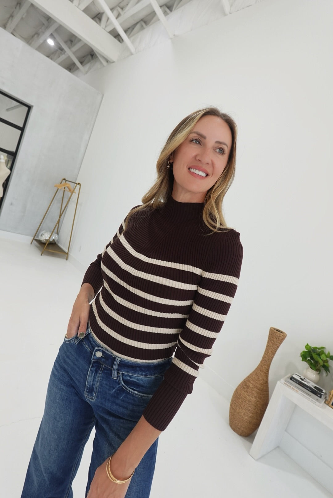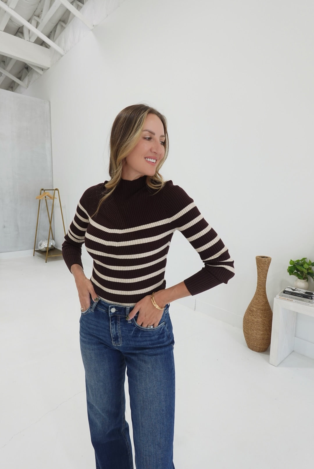 The Around Town Top offers a comfortable fit with its mock neck and long sleeves, perfect for cooler days. Crafted from a soft knit fabric, this pullover features subtle stripes that add a touch of style without overpowering your look. Its versatile design makes it an easy choice for layering or wearing on its own, ensuring you stay cozy and polished throughout your day.