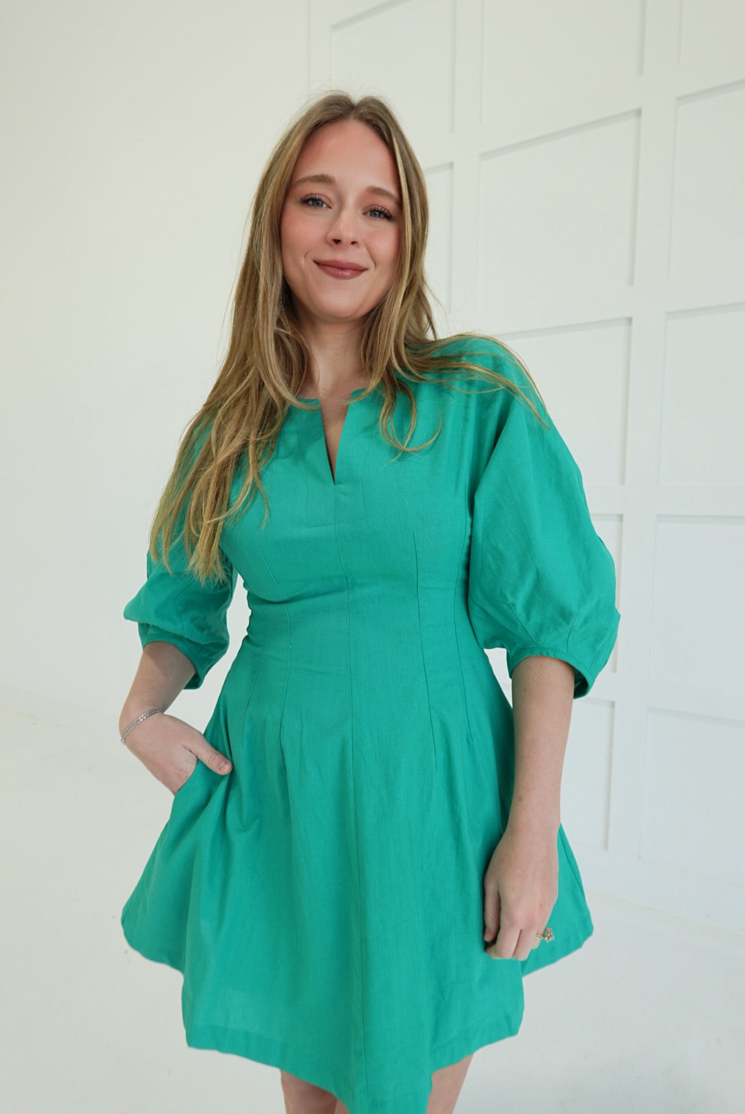 - Mini Dress With 3/4 Length Balloon Sleeves