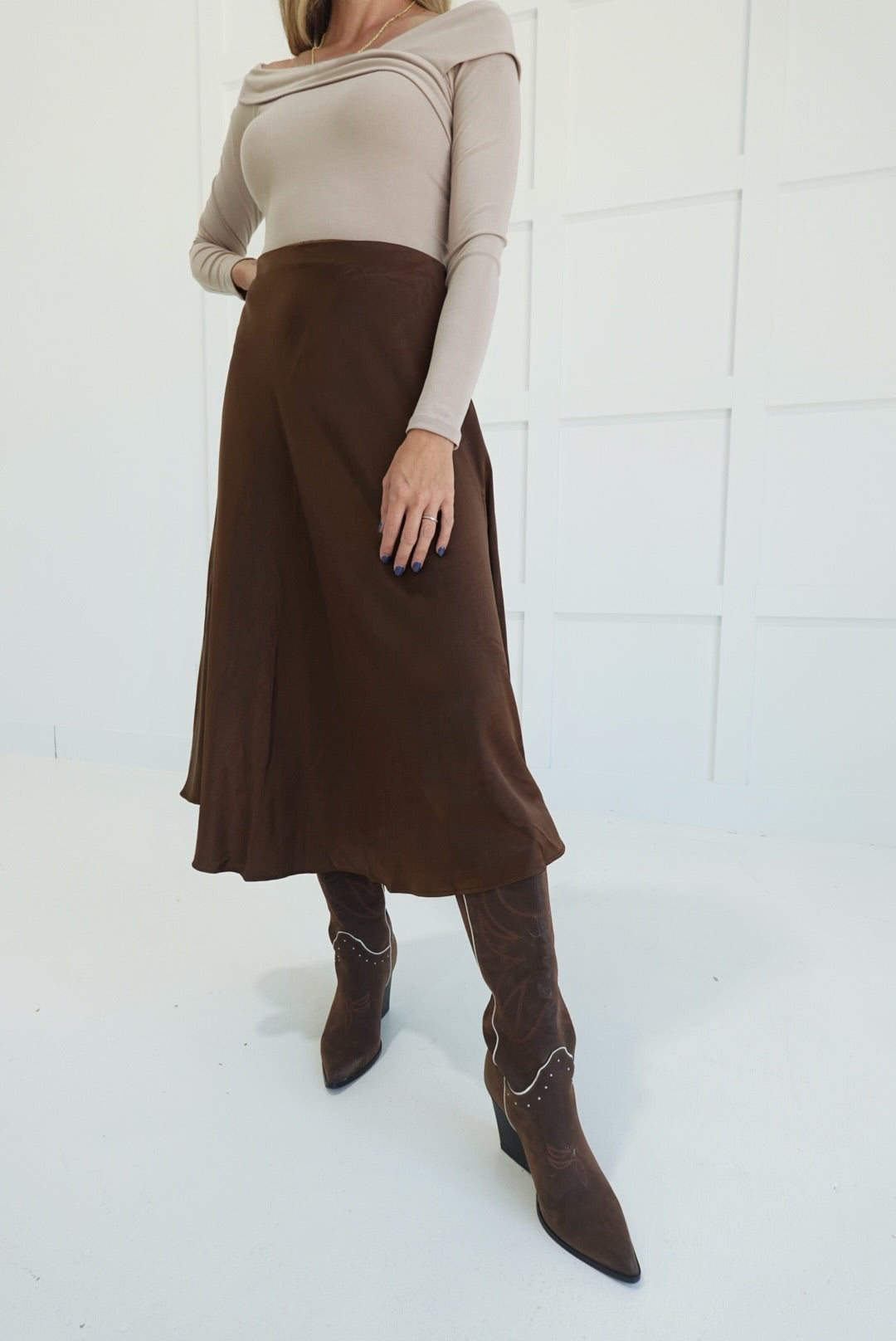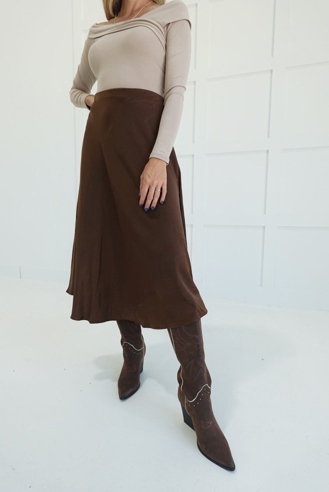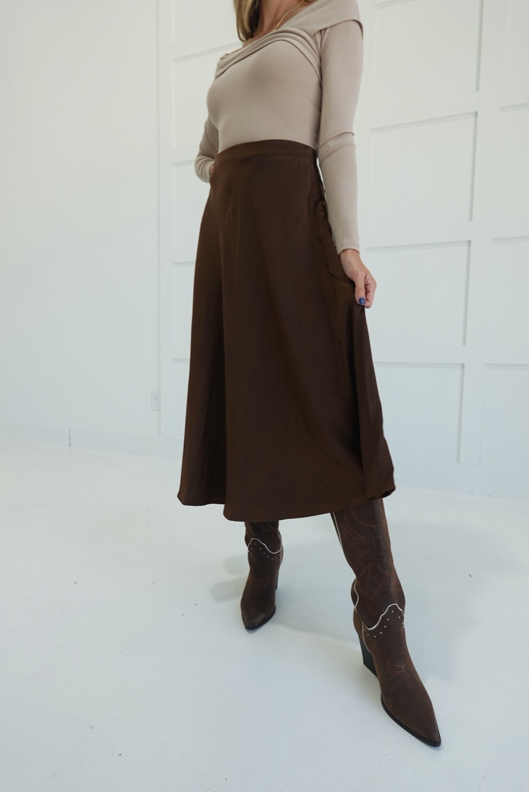 - Satin Flare Midi Skirt