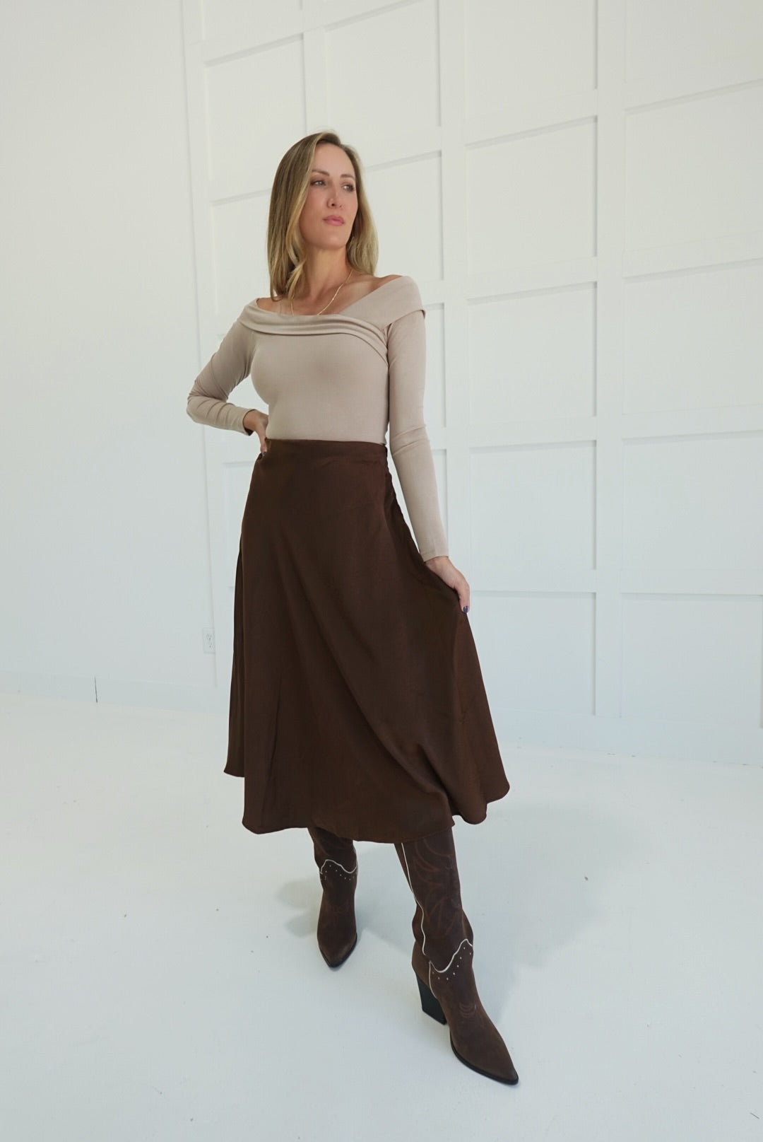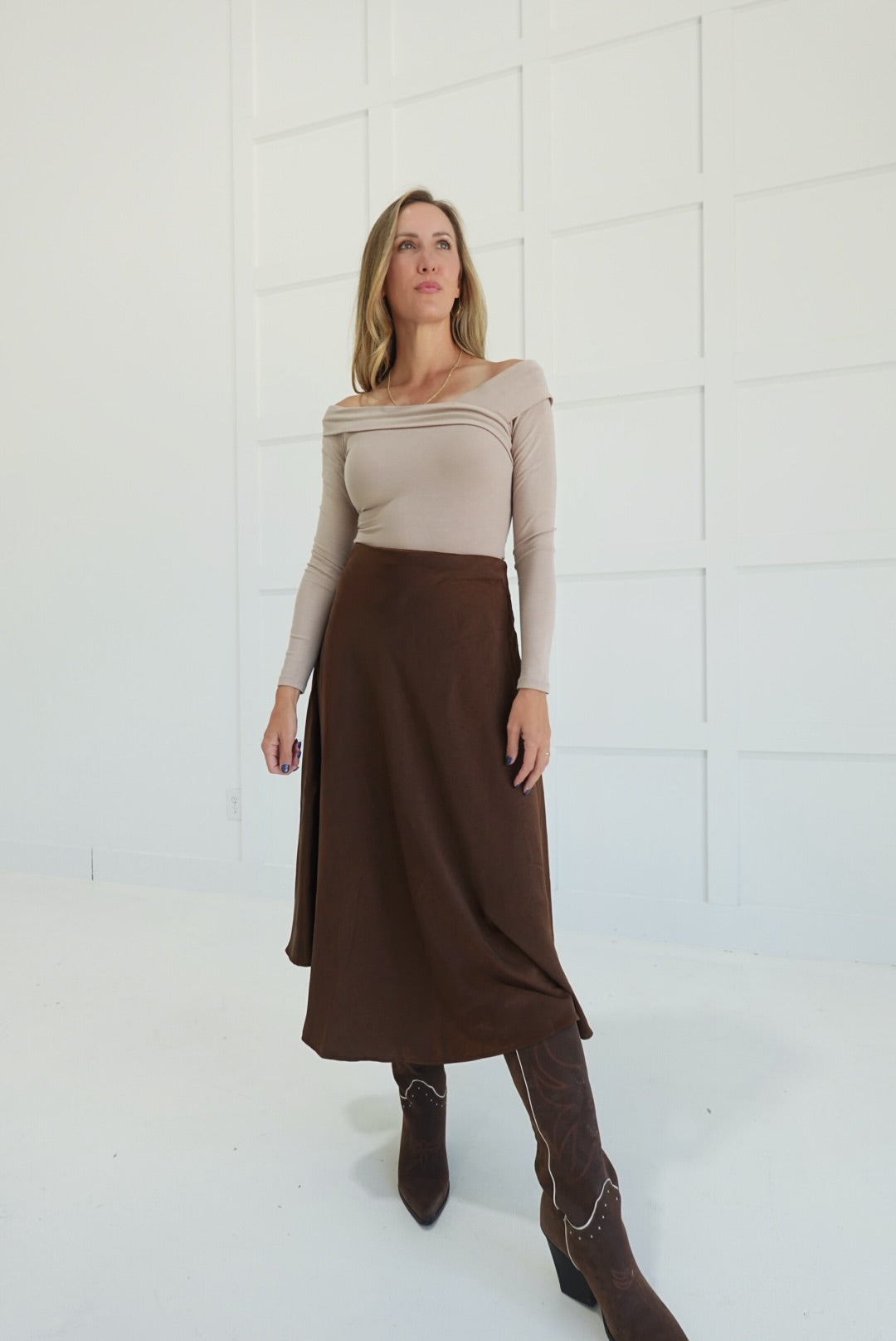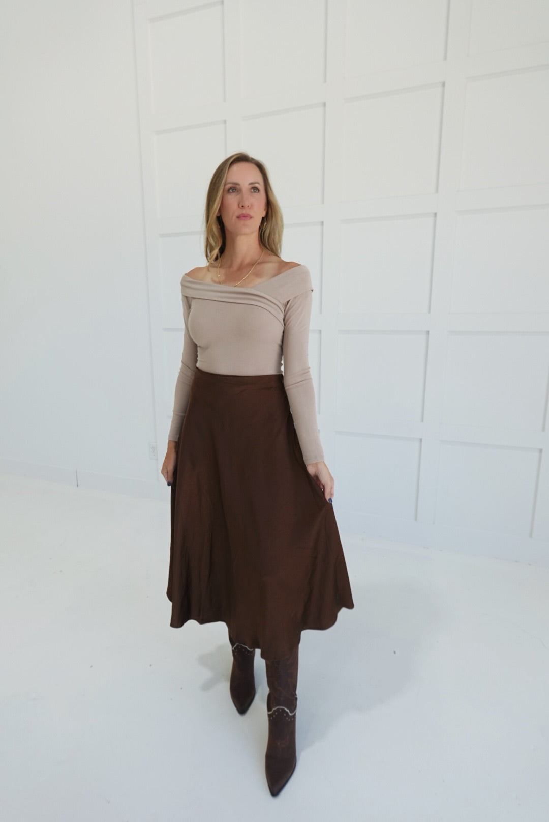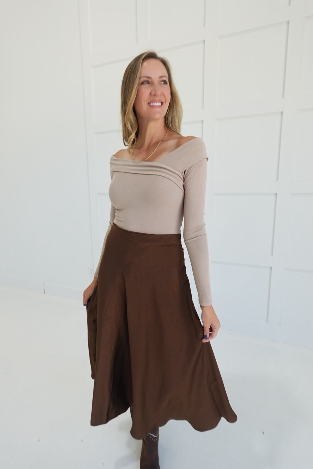 - Satin Flare Midi Skirt