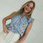 The Aysha Top features a charming ruffled hem that adds a delicate, feminine touch to its floral design. Crafted for comfort and style, this top effortlessly enhances your wardrobe with a soft, flattering silhouette. Perfect for casual outings or dressing up, it brings a fresh, uplifting vibe to your everyday look.
