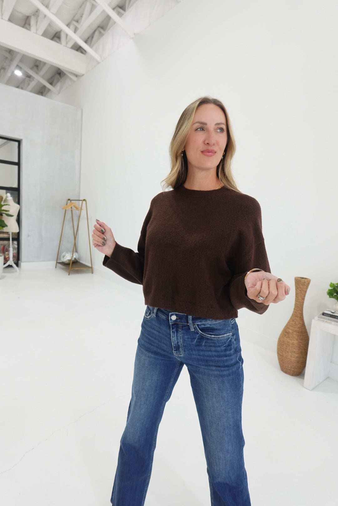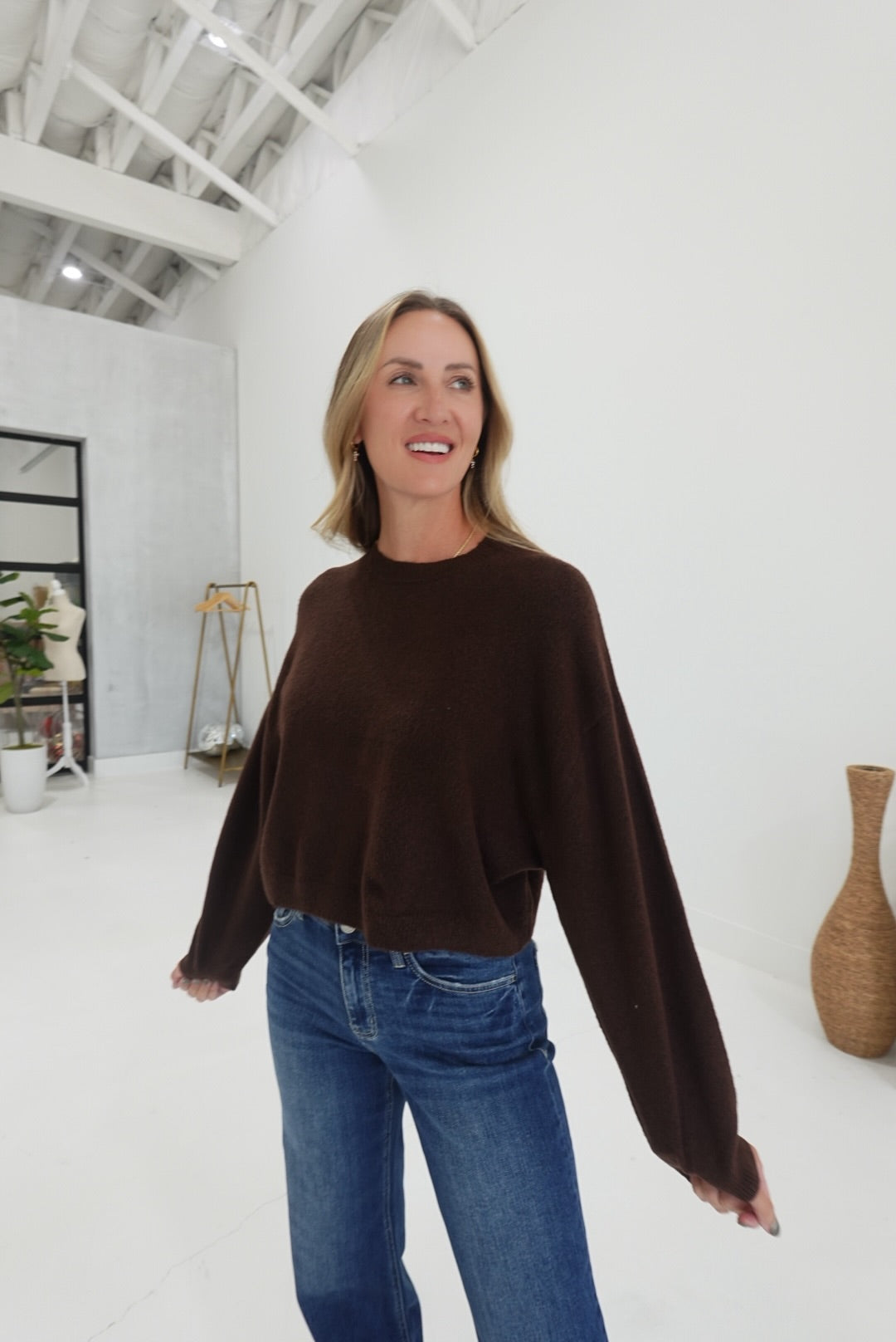 Stay cozy and stylish with the Back of Your Mind Sweater. This cropped pullover features long sleeves for warmth and a comfortable fit, perfect for layering or wearing on its own. Its rich red wood color adds a warm, inviting touch to your wardrobe, making it easy to pair with your favorite jeans or skirts. Ideal for cooler days, this sweater offers both comfort and effortless style to help you feel confident and cared for throughout the day.