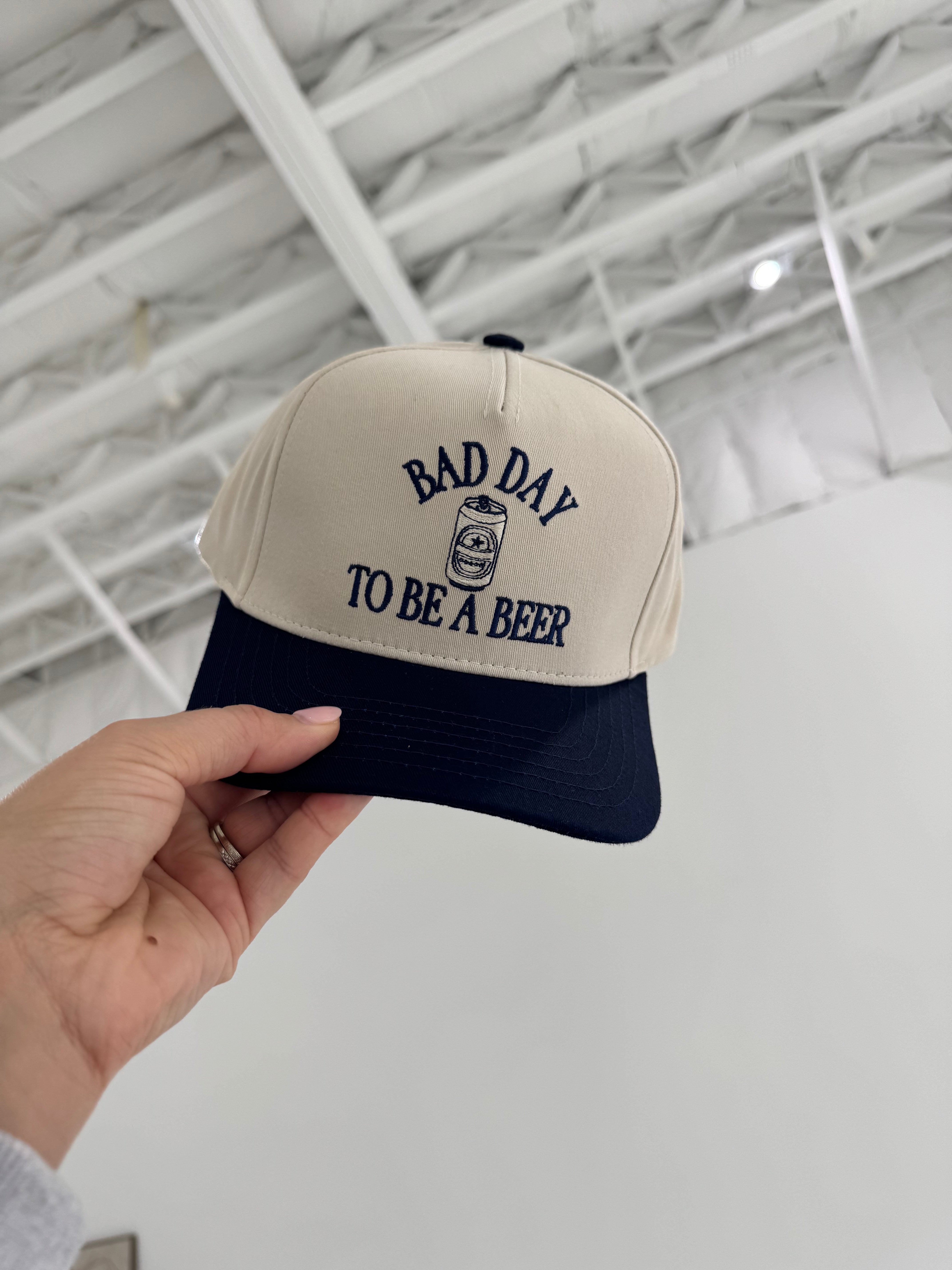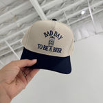 Grab this bold trucker hat and wear your sense of humor on your sleeve—or rather, on your head. Featuring embroidered "bad day to be a beer" lettering, it's the perfect statement piece for anyone who doesn't take themselves too seriously. Classic trucker styling with a mesh back keeps things breathable and comfortable, while the structured front panel gives you that effortless, confident look. Whether you're out with friends or just living your best life, this hat says what we're all thinking.