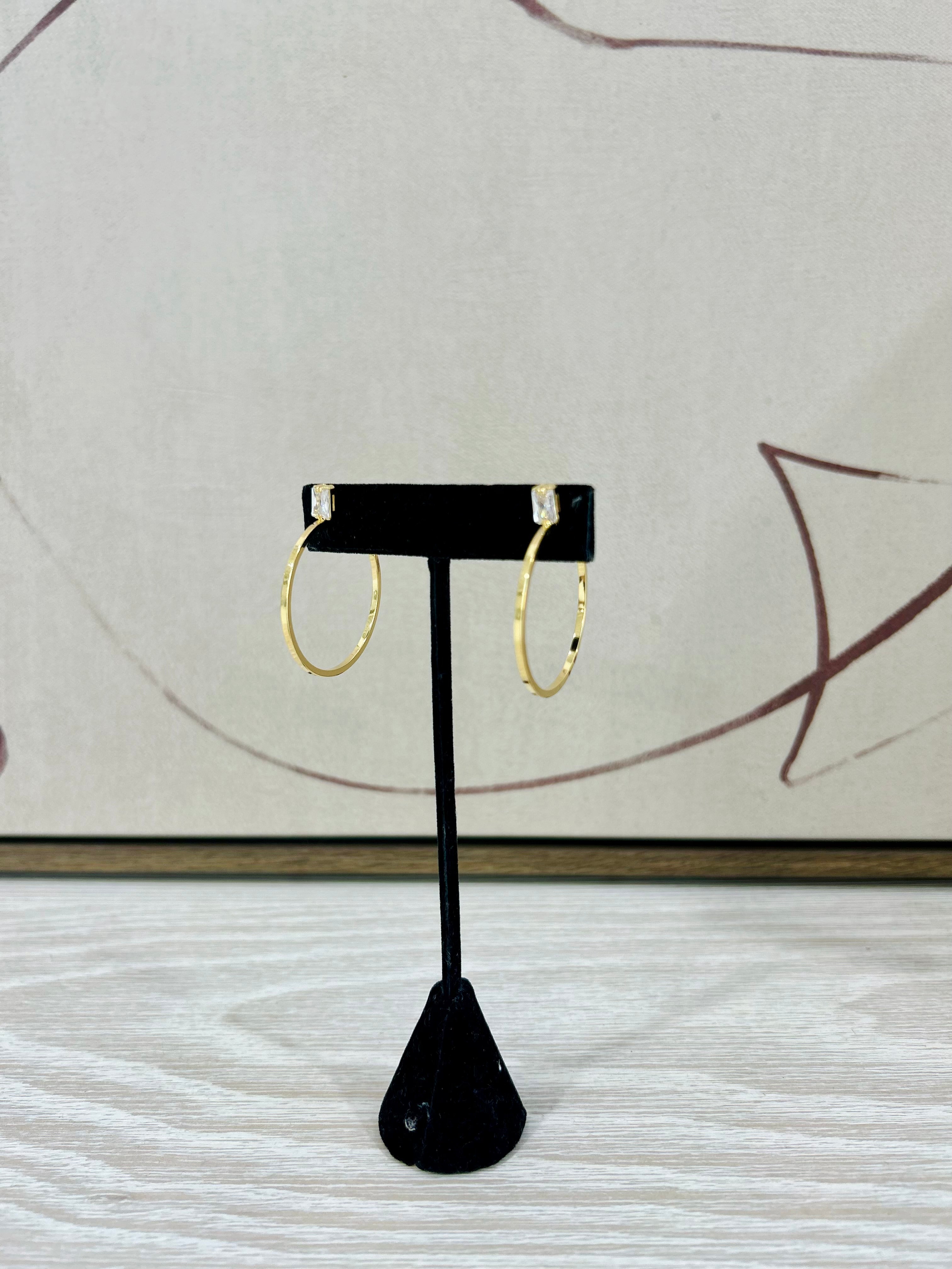 These 14k gold dipped baguette CZ stone hoop earrings blend timeless elegance with everyday wearability. The sparkling baguette-cut stones add a refined touch, while the gold dip ensures lasting shine and durability. Perfect for enhancing both casual and formal outfits with graceful sophistication.