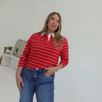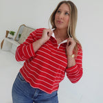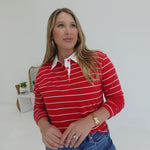Bastian Collared Top - Red/White