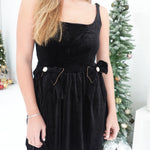 Bejeweled Velvet Mini Dress - Black