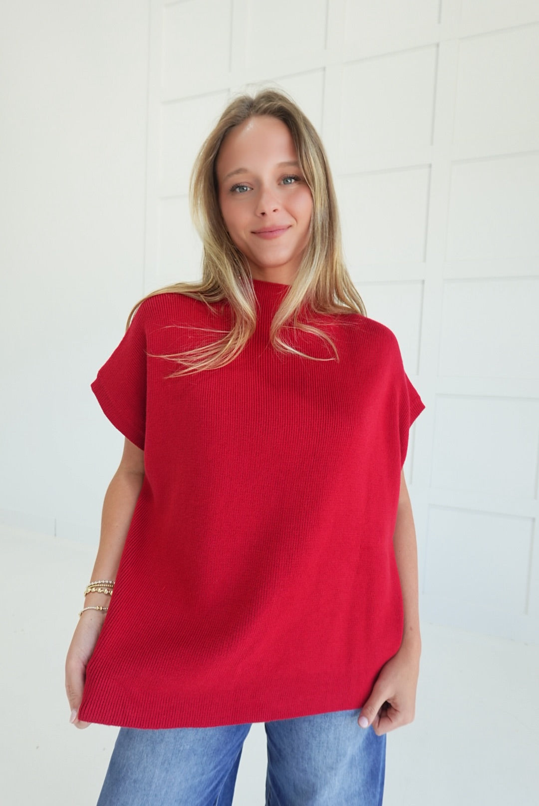 This sweater features a comfortable drop shoulder design and a stylish mock neck, offering a relaxed yet polished look. Its short sleeves make it perfect for layering or wearing on milder days, combining versatility with ease of movement. Ideal for casual wear, this lightweight sweater brings understated elegance to your wardrobe.