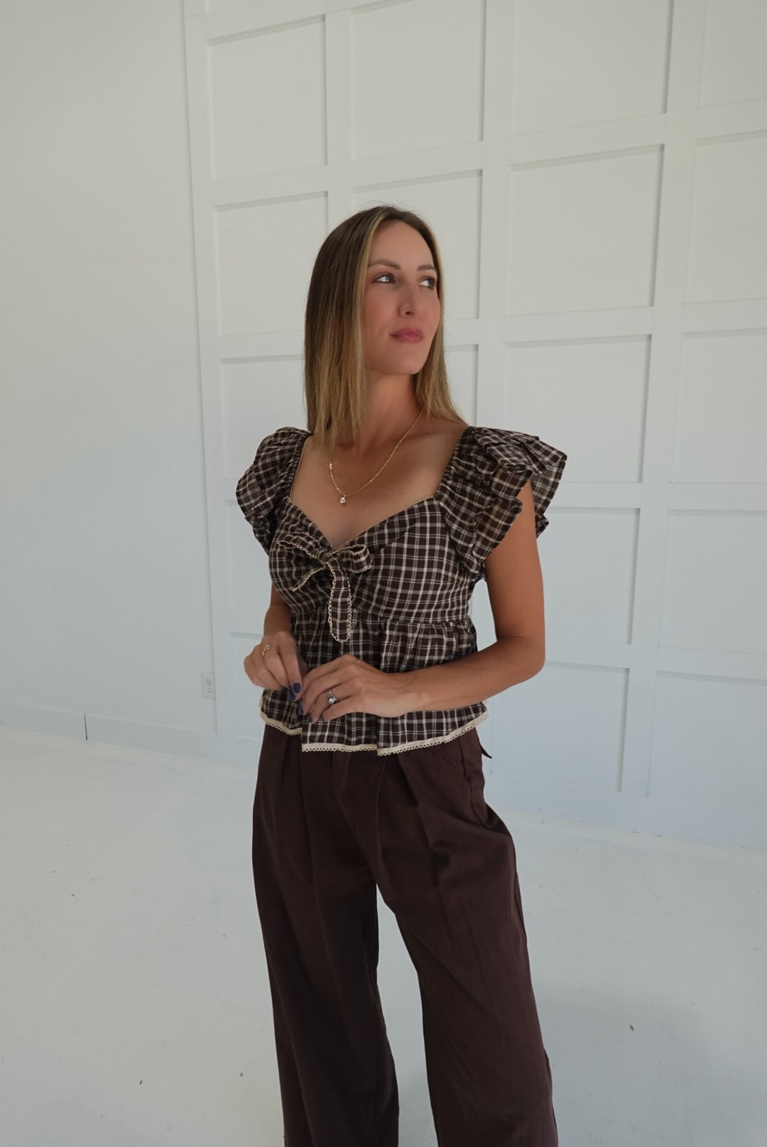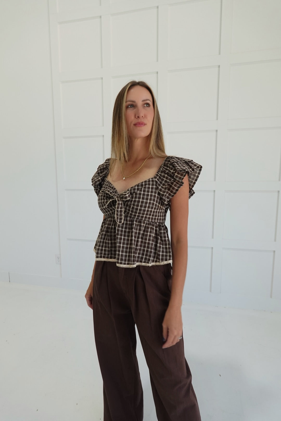- Plaid Gingham Bow Front Top
