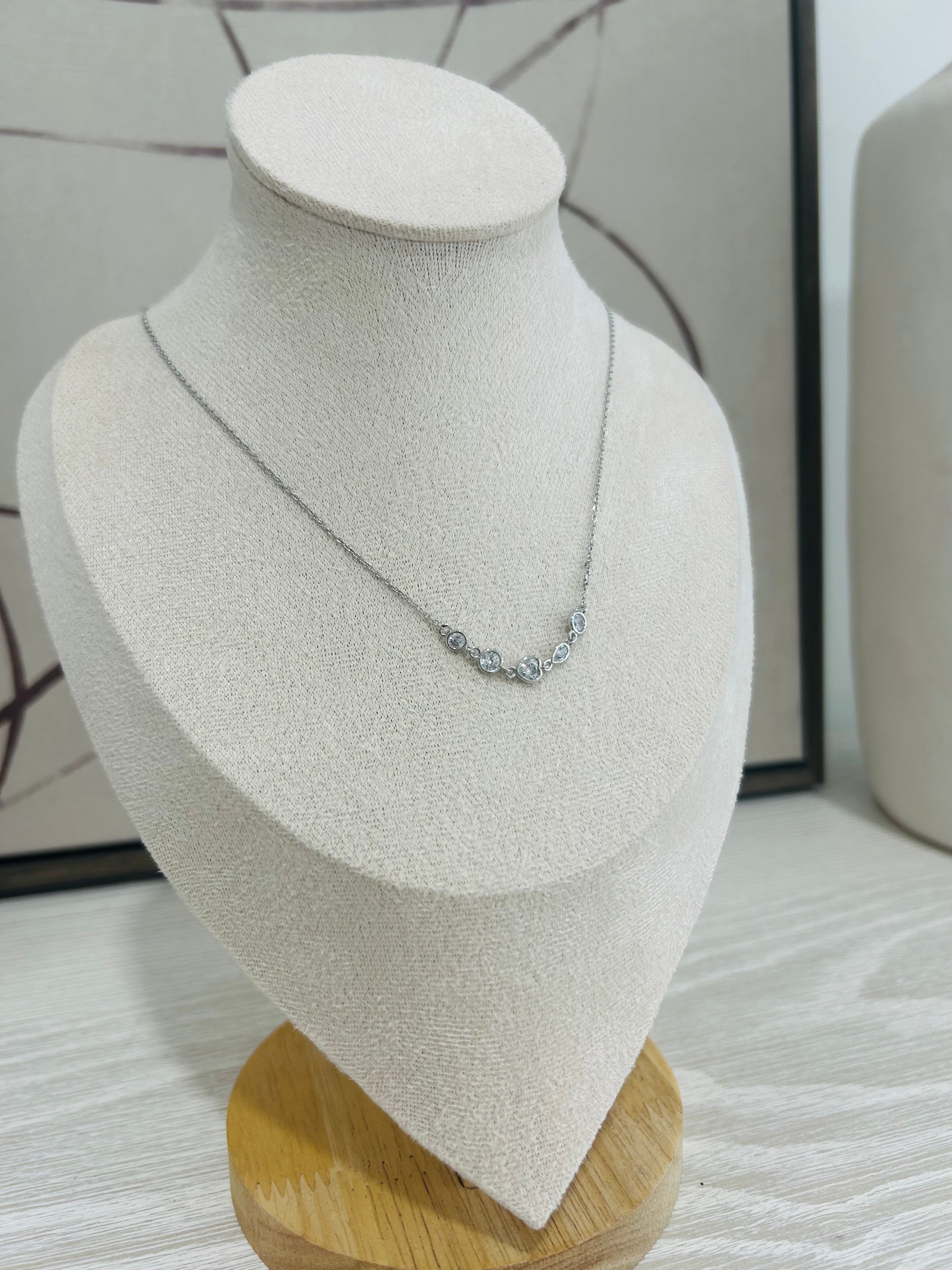 Bezeled Bar Necklace - Silver
