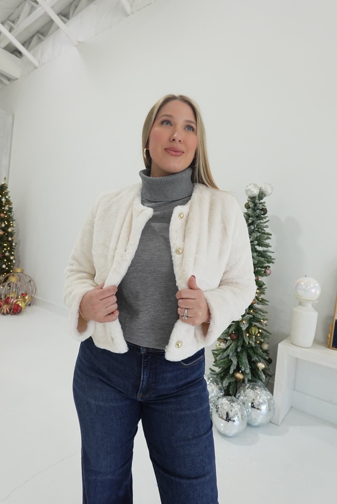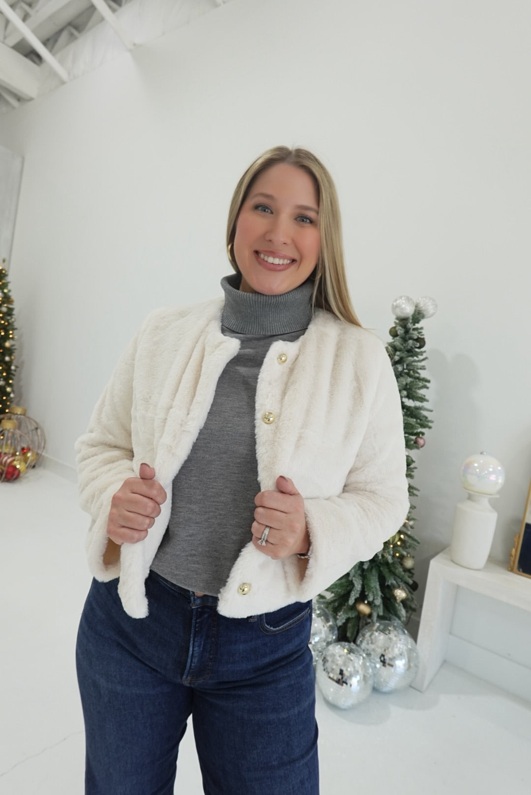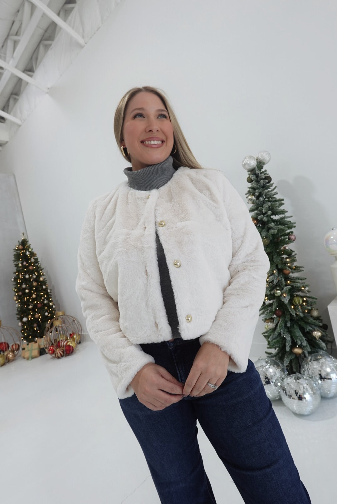 The Bismont Fur Coat in Cream offers cozy warmth with its long sleeves and soft faux fur texture. Designed to keep you comfortable during chilly days, this coat combines style and practicality effortlessly. Its elegant cream color adds a touch of sophistication to any outfit, making it a versatile addition to your wardrobe. Perfect for layering, it supports your need for both comfort and fashion in cooler weather.