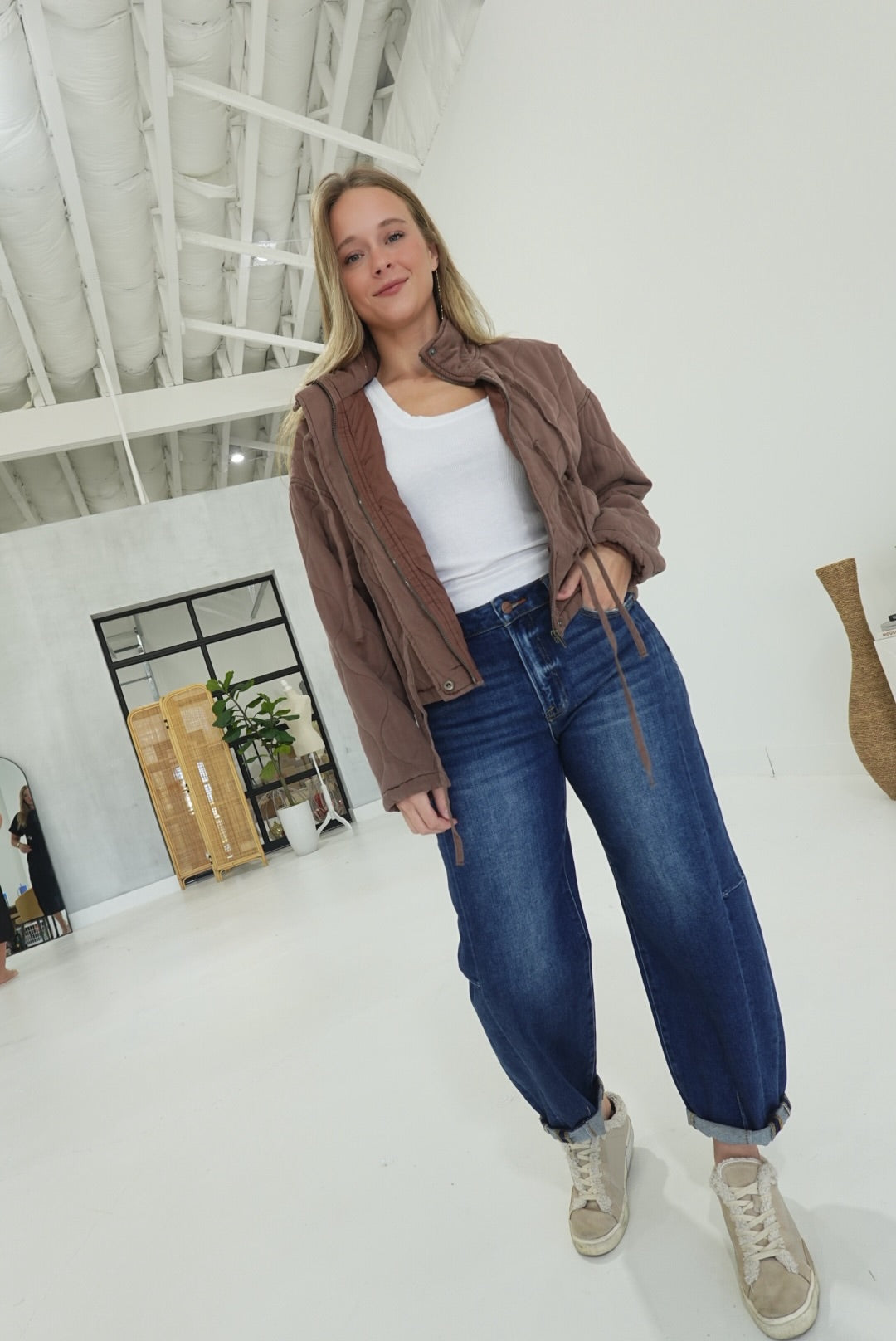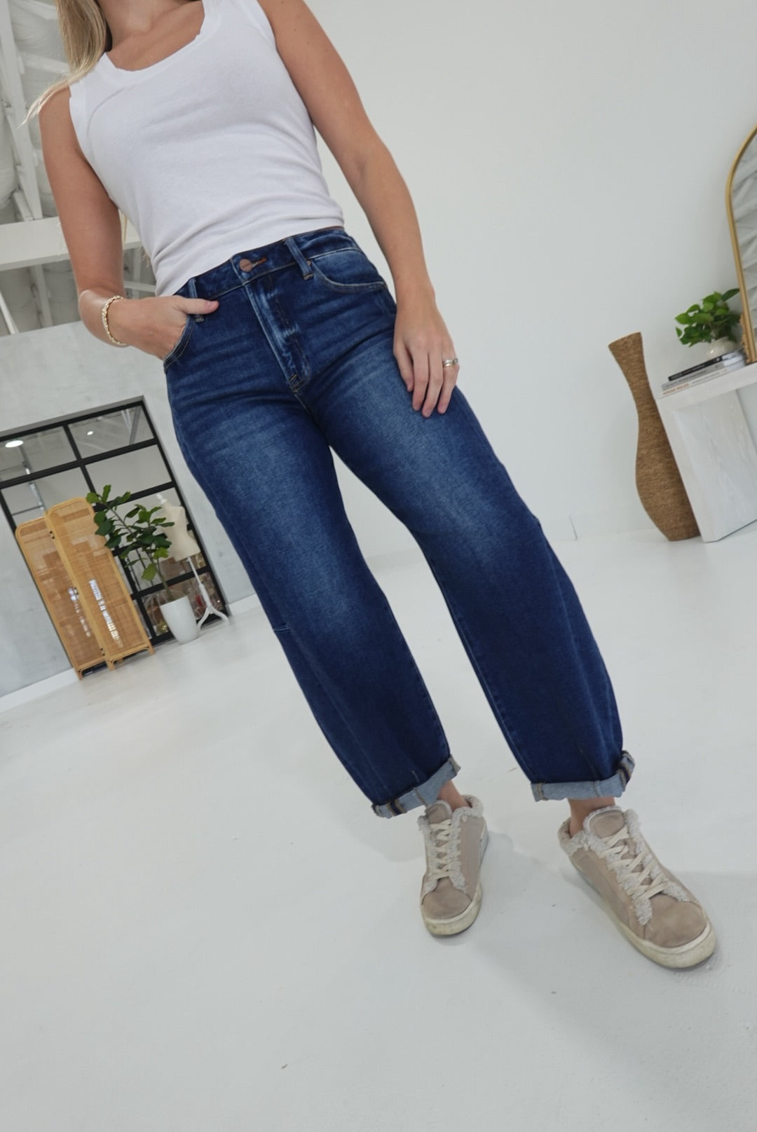 Experience comfort and style with the Blakely Barrel Jean. Designed with a high-rise fit, these jeans provide flattering support and a secure feel throughout your day. The barrel silhouette adds a modern twist, offering a relaxed yet tailored look that moves with you effortlessly. Perfect for elevating everyday outfits with ease and confidence.