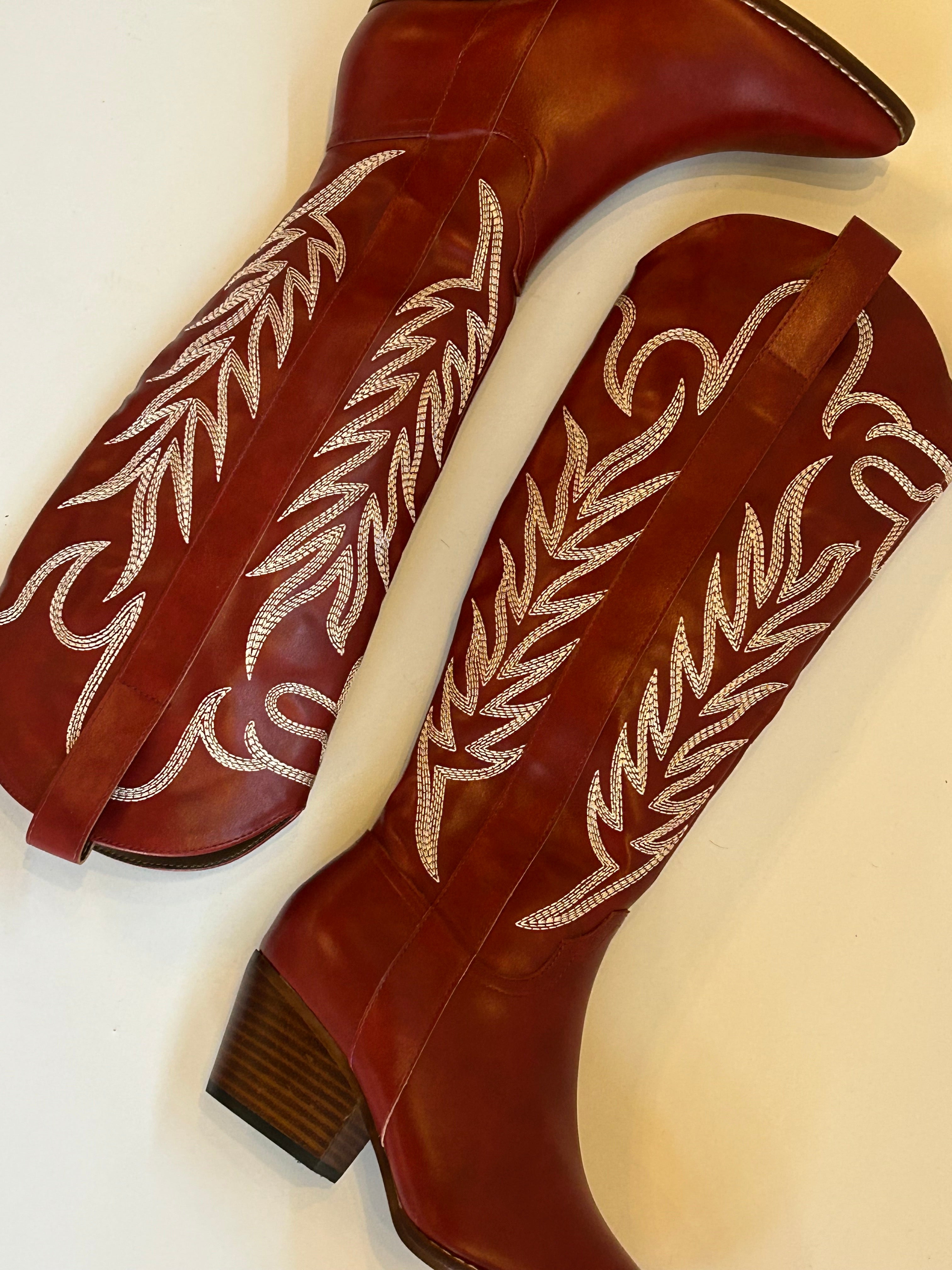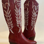 - Tall Embroidered Western Boot In A Cherry Cola Color