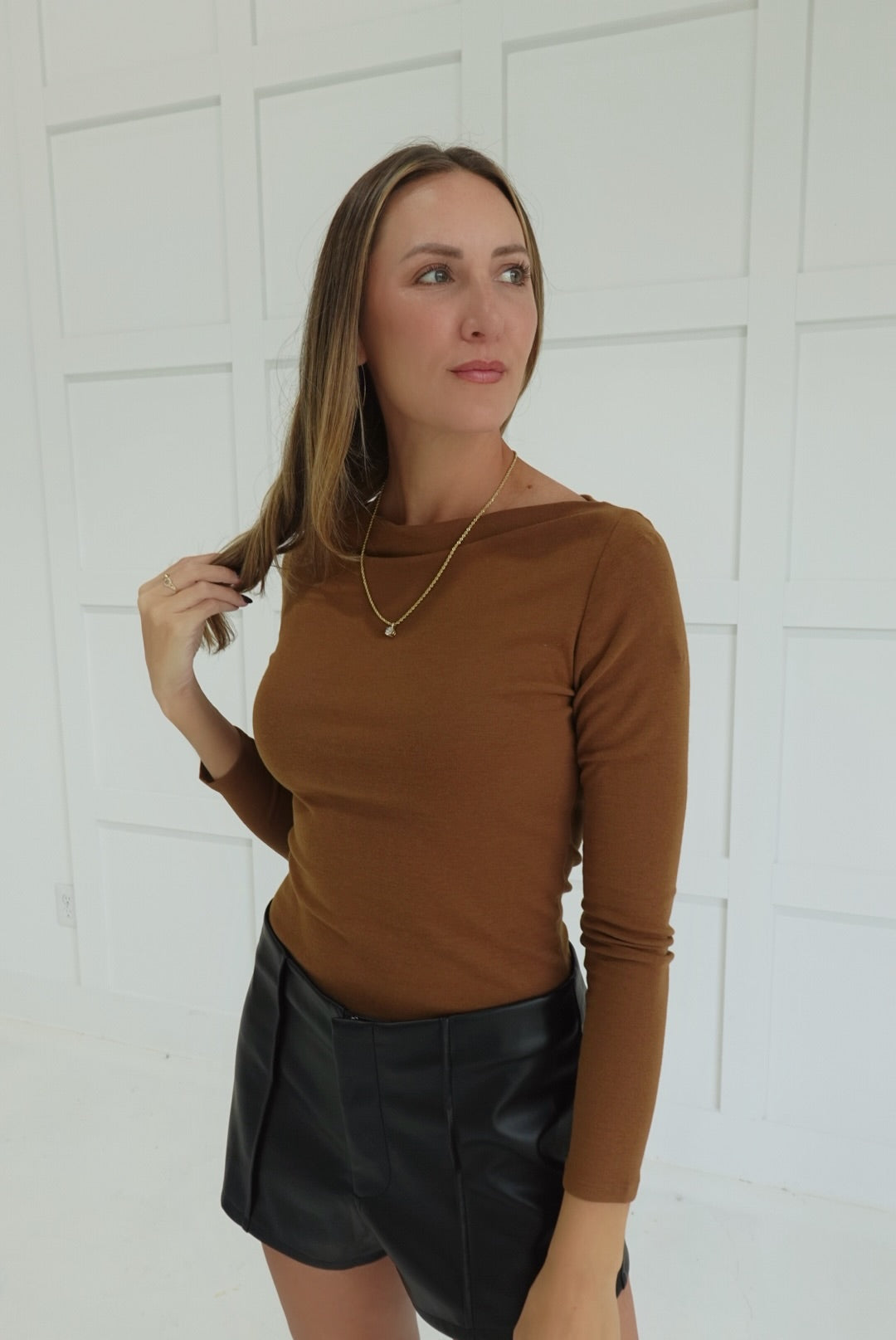 Experience effortless comfort with this Boatneck Long Sleeve Tee. Crafted from brushed rib knit fabric, it feels soft against your skin while providing gentle warmth. The wide boat neck design offers a flattering, relaxed fit that suits any occasion, whether layered or worn alone. Designed to move with you, this top combines style and coziness to support your everyday wardrobe needs.