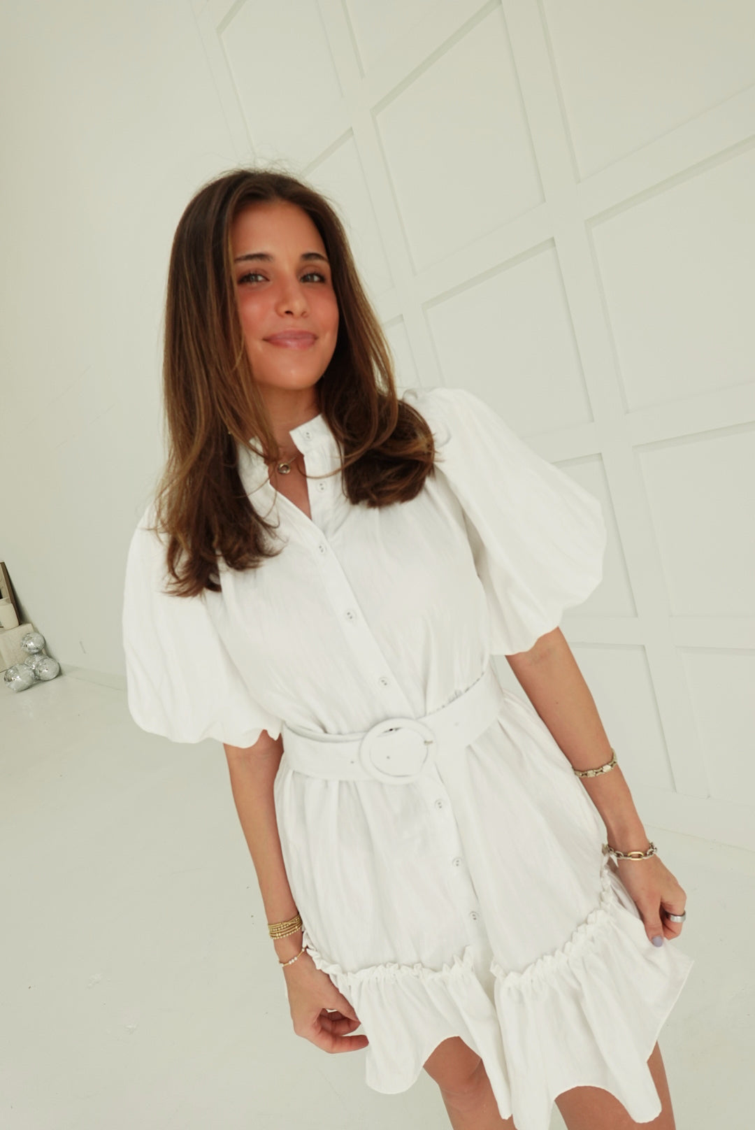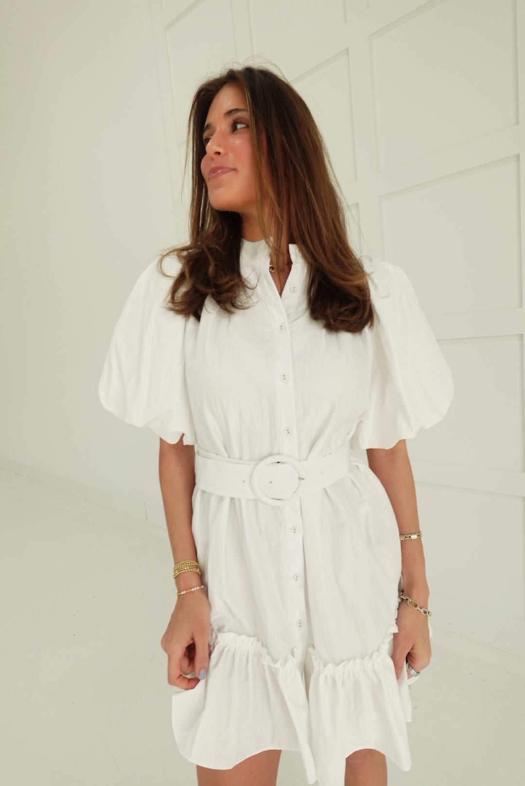 Bonnie Belted Dress - White