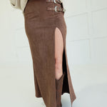 - Faux Suede Maxi Skirt With High Slit