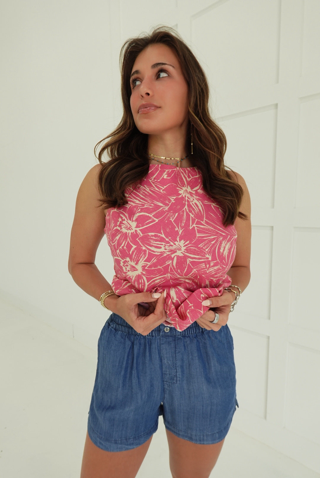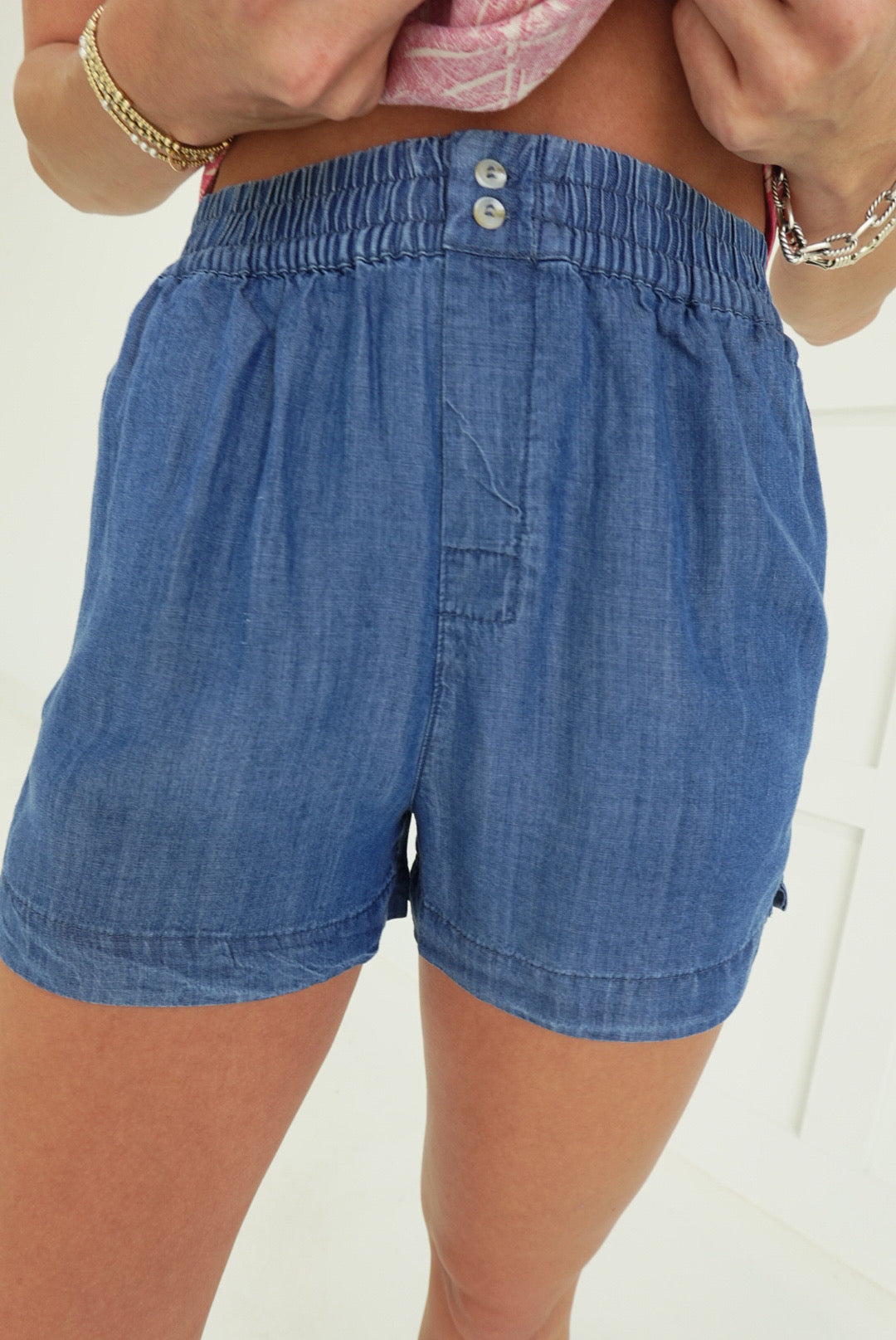 - Pull-On Elastic Waist Tencel Shorts