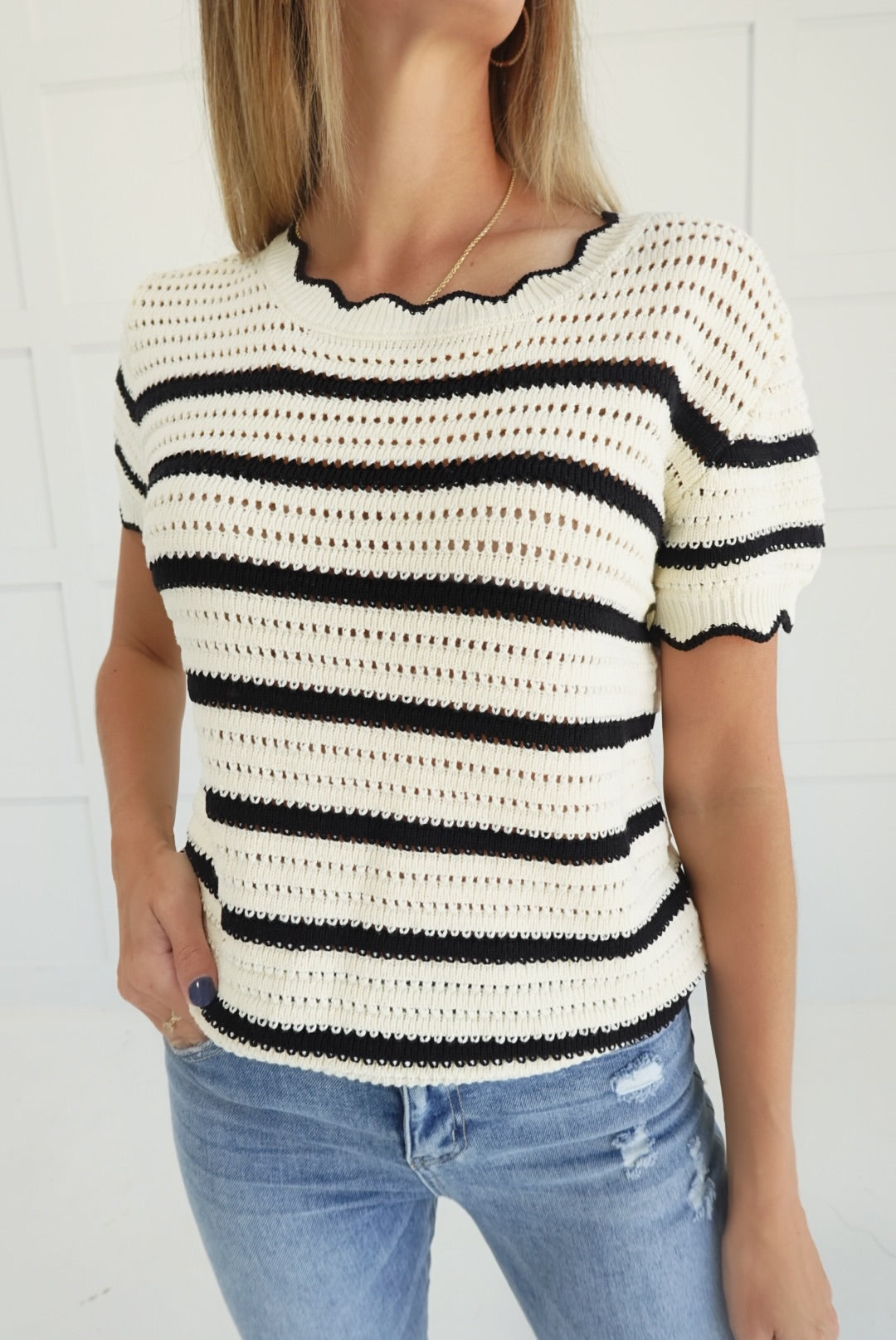 - Striped Crochet Knitted Sweater