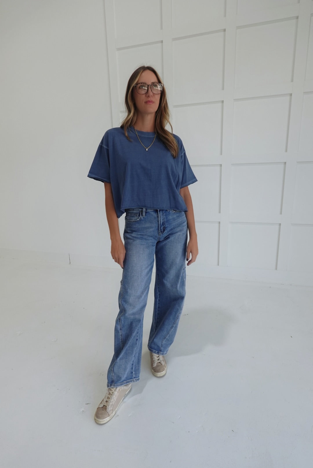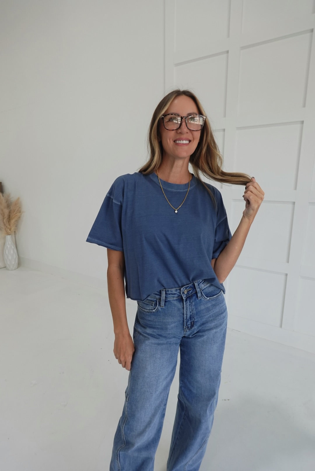 Experience comfort and style with the Boxy Acid Wash Tee. Crafted with pigment dye and enzyme washing, this oversized crop boxy tee offers a unique faded look and a soft, broken-in feel. Its relaxed fit makes it perfect for casual wear, providing ease of movement and a modern edge to your wardrobe.